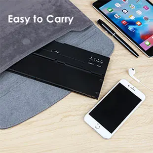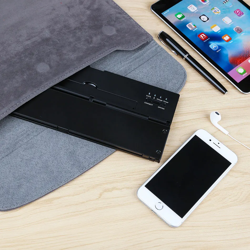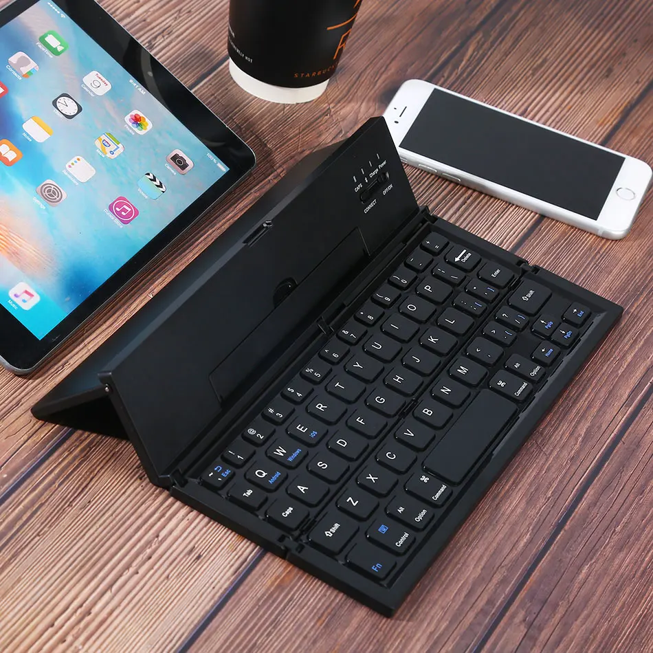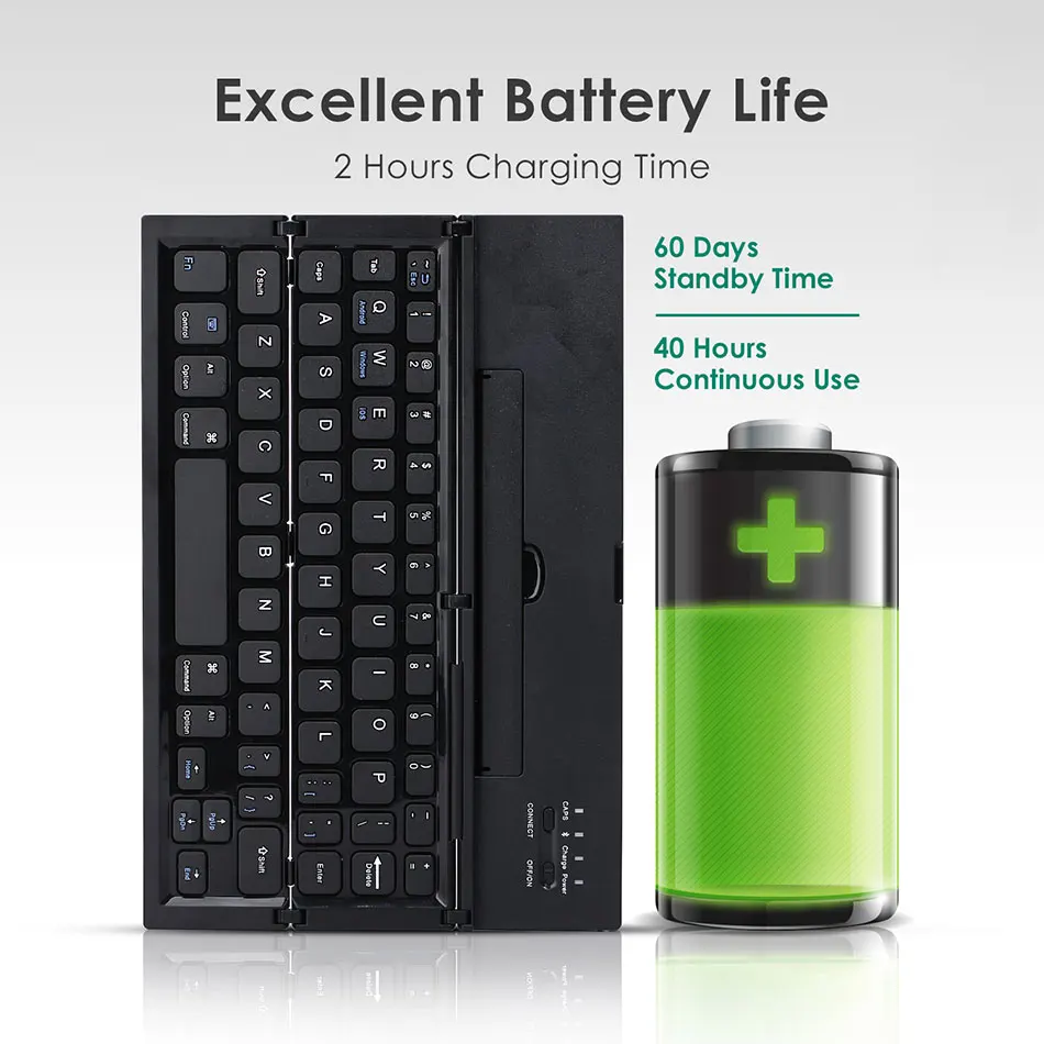 • 【Folding Bluetooth keyboard】 Tri-складной Bluetooth беспроводная клавиатура, с помощью Bluetooth 3,0, стабильная передача сигнала, эффективный радиус действия до 10 метров. • 【 Ультра-тонкий и portable】three раз foldability и компактный размер упаковки, они разработаны специально для удобный и портативный ежедневного использования. • 【Chocolate keycaps】the кнопки разработаны с использованием высокоточного структура ножничный средства ухода за кожей стоп. Шоколадная колпачки, ультра-тонкий и бесшумный. Кнопки нажимаются равномерно стресс и чувствовать себя комфортно. • 【Hidden design】дизайн клавиатура имеет подставку для мобильные телефоны и планшеты с зарядными устройствами, и клавиатура оснащена нескользящими накладками. Подходит для механического оборудования с размером менее 10 дюймов. • 【Wide compatibility】universal ультра-тонкая Складная Беспроводная bluetooth-клавиатура, совместимый с 3 основными операционными системами Android, iOS, Windows. Более быстрыми клавишами, чтобы переключить система по нажатию одной кнопки.