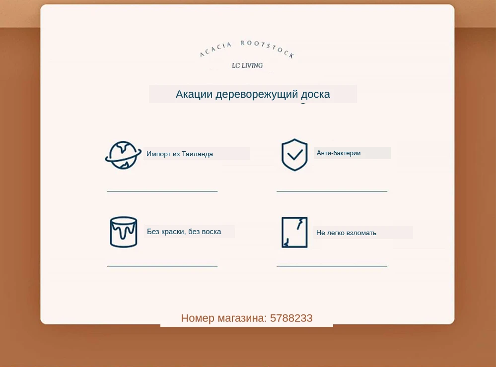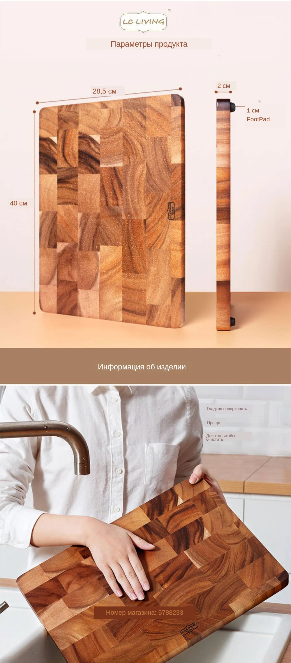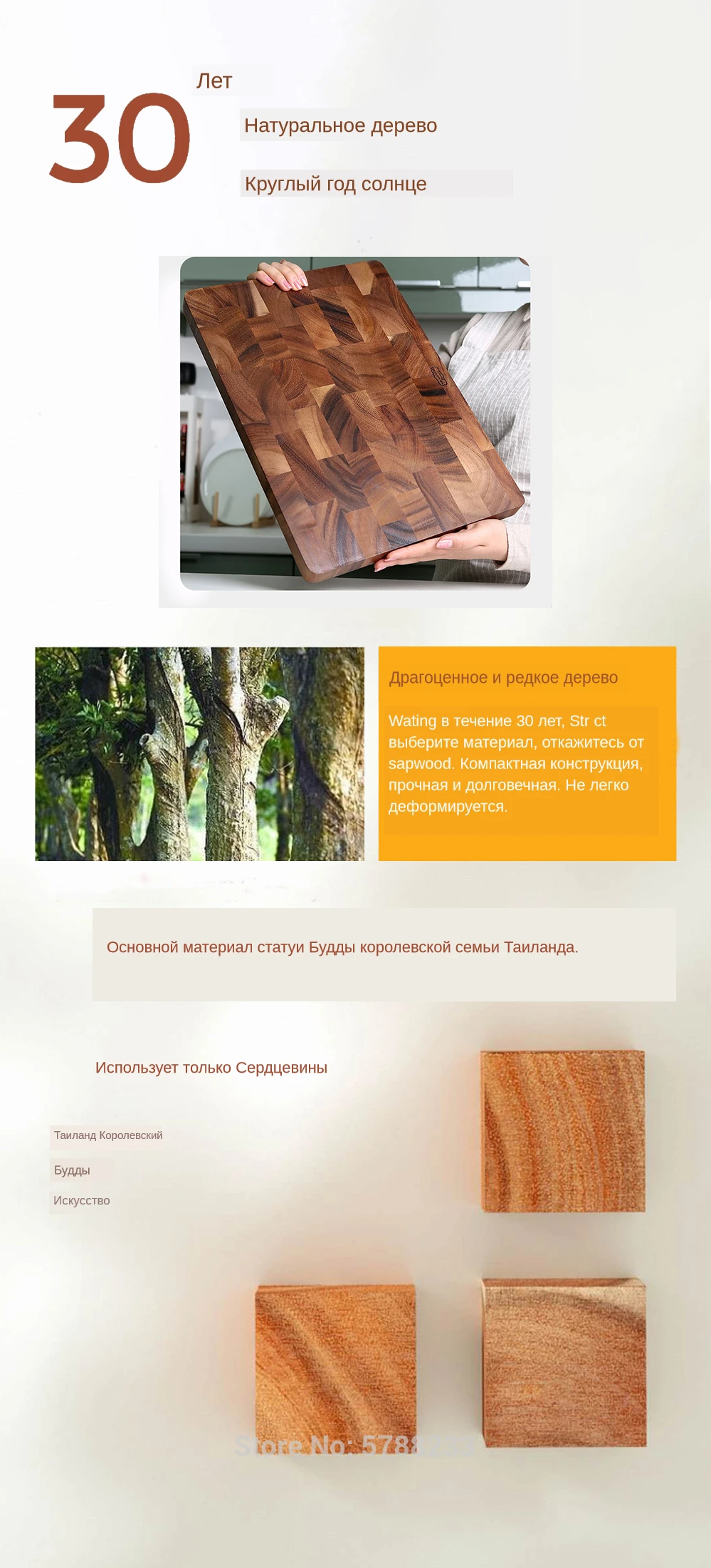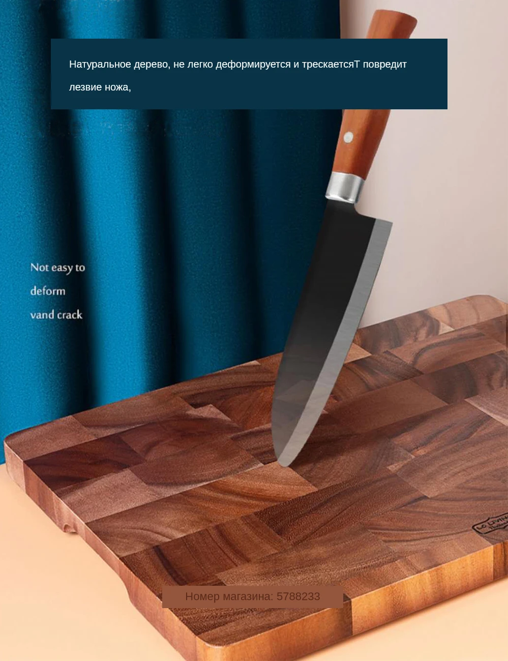 Изготовлен из твердой древесины, здоровой, экологически чистой и устойчивой, не повредит лезвие ножа, не легко деформируется и трескается. Ключевые особенности: Import импорт Таиланда Анти-бактерии Без краски, без воска Не легко взломать