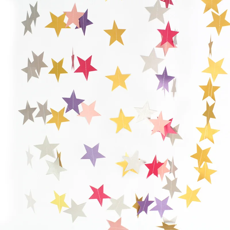 Бумажная гирлянда в форме звезды, баннеры, баннеры для маленьких девочек, 4 м, висячая бумага, с днем рождения, свадьбы, вечеринки, украшения для дома
