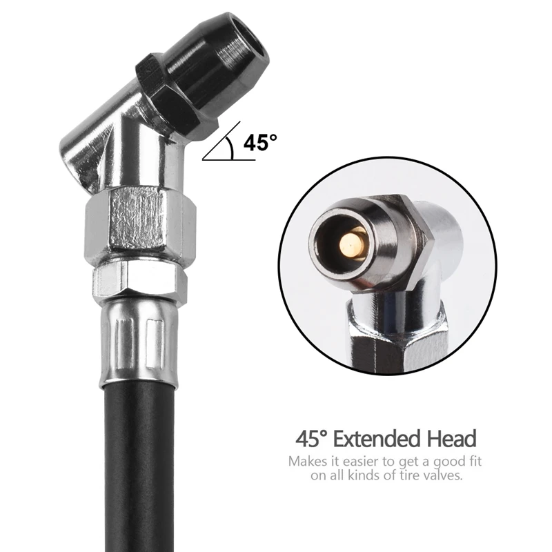 Простота в использовании: высококачественный гибкий резиновый шланг (16,92 дюйма) позволяет легко получить доступ к стеблям клапана. Вращающийся на 360 градусов патрон помогает получить доступ ко всем позициям клапана, функции удержания давления и клапан сброса воздуха, чтобы уменьшить давление в шинах, если это необходимо. Это делает продукт очень простым и понятным в использовании даже для новичка! Только 2 стандартных аккумулятора AAA (не входят в комплект) могут прослужить долгое время из-за низкого энергопотребления.