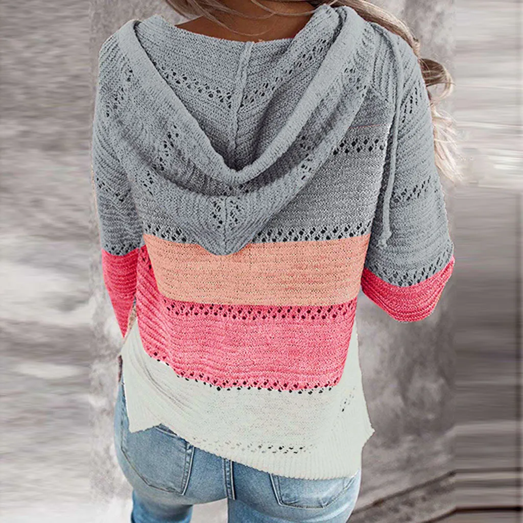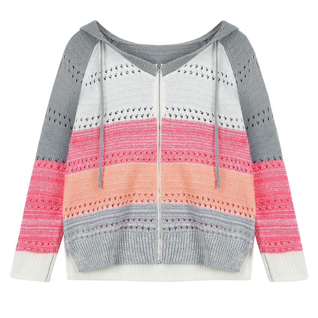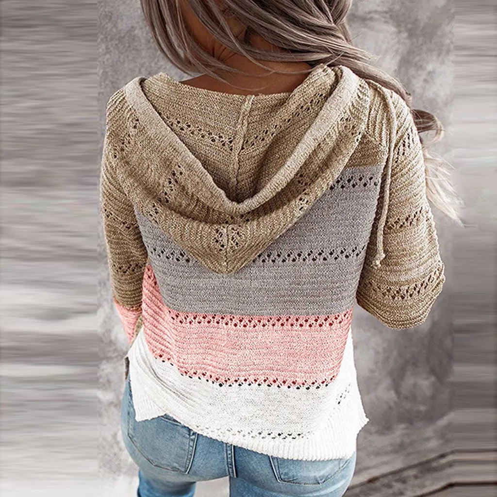 Fashion Women Casual Patchwork Long Sleeves Hooded Sweater Cardigan Blouse Tops