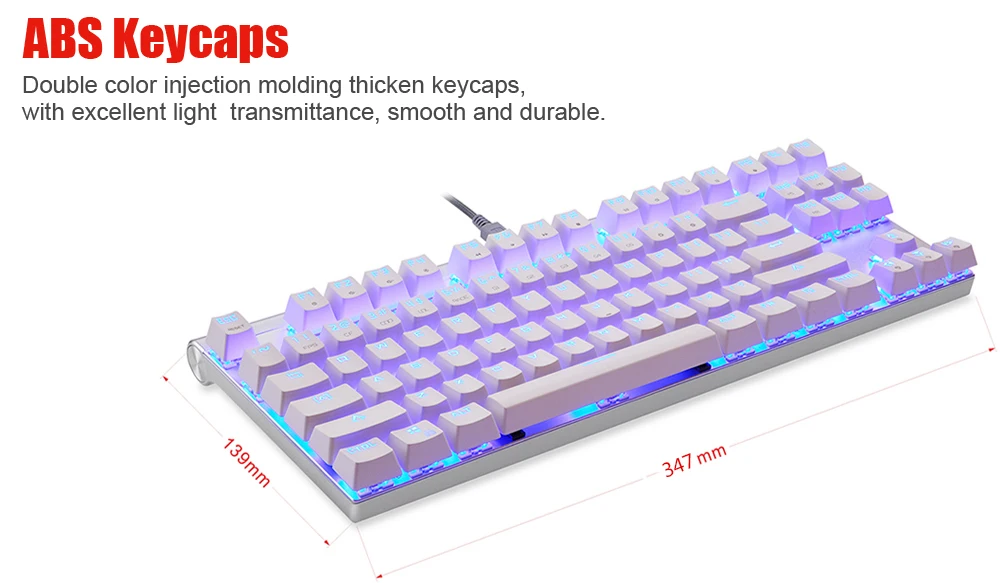 2. Двойная конструкция ABS keycaps, утолщенный дизайн и превосходный светильник с коэффициентом пропускания, гладкий и прочный.