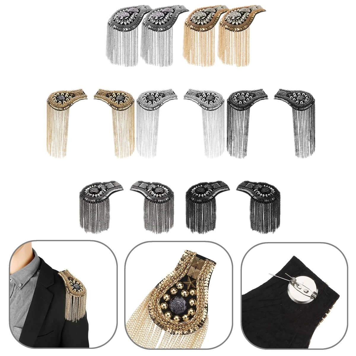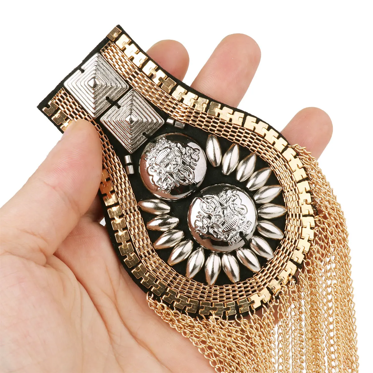 2 шт., унисекс, модная винтажная цепочка с кисточками, эполет, Наплечные доски, значок, брошь на плечо, женский и мужской костюм, деко, панк стиль, готика, Военный стиль, нарядное платье, аксессуары