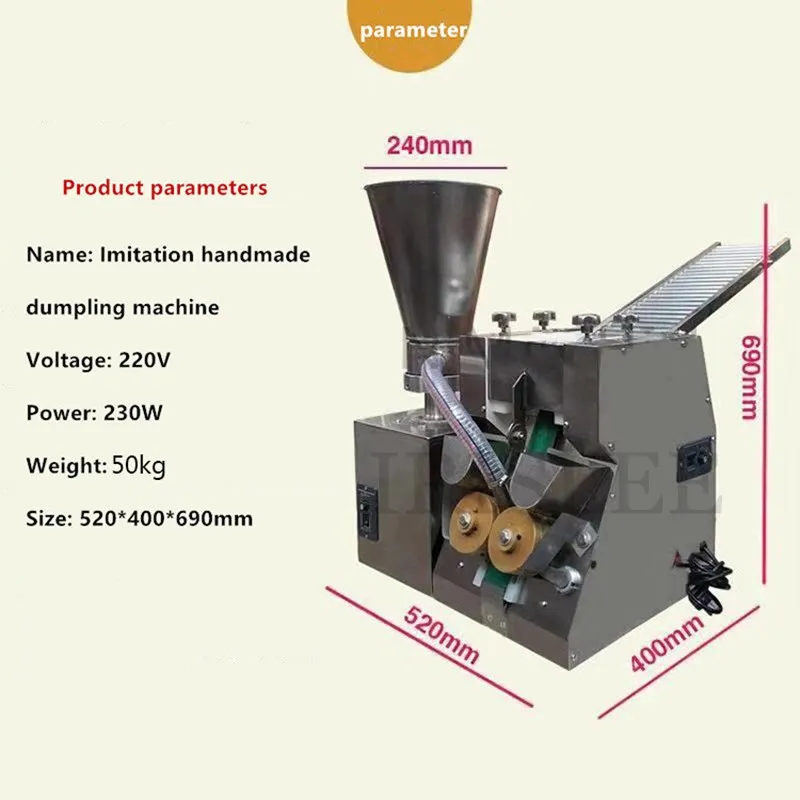 Название: машина для изготовления Пельменей Напряжение: 220 В 50 Гц Мощность: 230 Вт NW/GW:50/60 кг Размер: 520*400*690 мм Выходная мощность: 4200 шт/час Материал: нержавеющая сталь Машина использует муку и воду maxium пропорции: 10:5.7