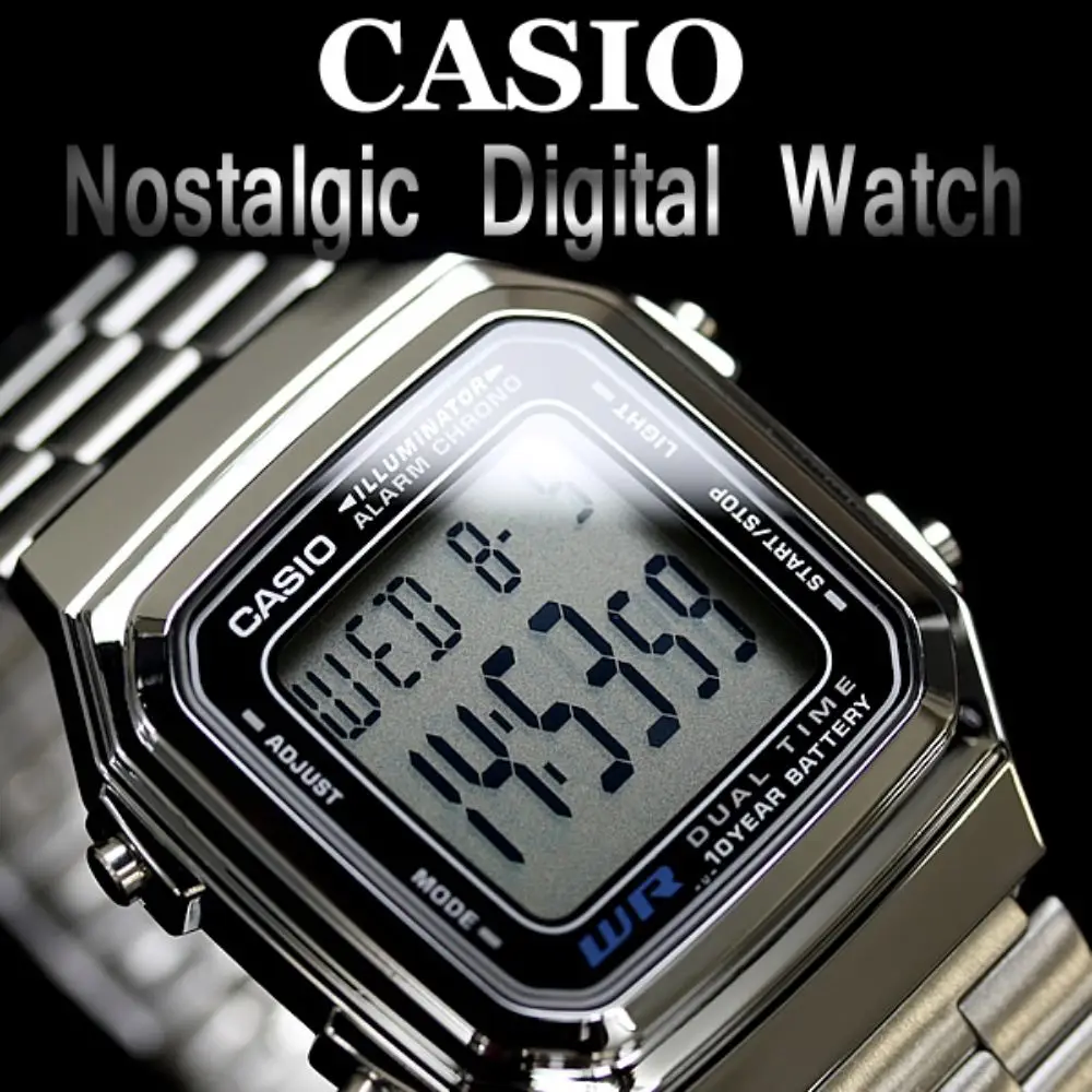 Мужские Цифровые часы Casio с подсветкой из нержавеющей стали в стиле ретро