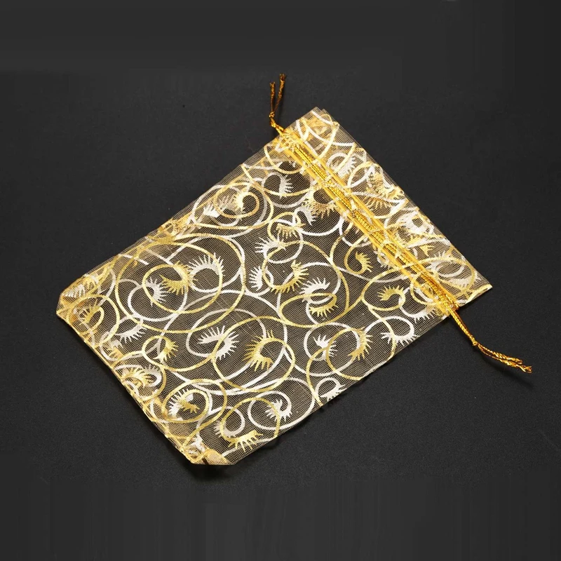 100pcs Champagne Eyelash Organza Drawstring Pouches Jewelry Party Wedding Favor Gift Bags 3.5"x4.3"