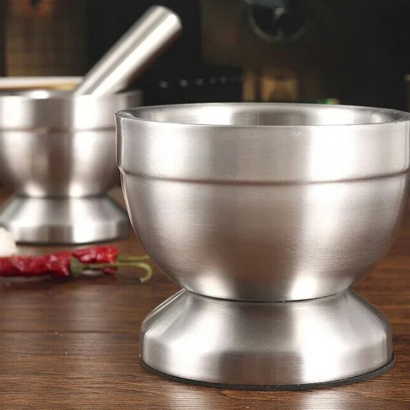 Ступка и пестик из нержавеющей стали, мясорубка для специй, шлифовальная машина для порошка Песто с крышкой для дробления абразивных, с нескользящей базой, Comfo