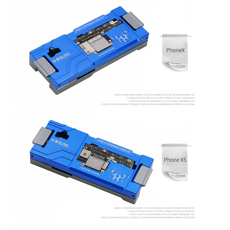 MJ C17 3 в 1 прецизионный разделительный прибор PCB для IPhone X XS MAX разделяющий, простой в использовании, подключите верхнюю и нижнюю Материнские платы для тестирования/ремонта, избегайте проблем после установки, увеличение обслуживание скорости. Проверьте заранее, чтобы избежать повторной разборки и поломки материнской платы. Маленький размер, легко носить с собой. Оперативный процесс: 1: подготовьте Кабель включения/выключения питания * 1 Мощность линия * 1 ЖК-кабель * 1 Экран * 1 Основная плата * 1 2: разложение среднего слоя iPhone просто оснащено испытательным приспособлением 3: установка: положите в нижнюю основную плату, положите на пин-доску, поместите верхнюю доску, а затем закройте тестовую стойку. 4: первый способ подключения к экранной линии, загрузке, шнуру питания или тестируемым чернилам аккумулятора. Второй способ-подключить конечную вилку к основанию первого метода для реализации функции кисти.