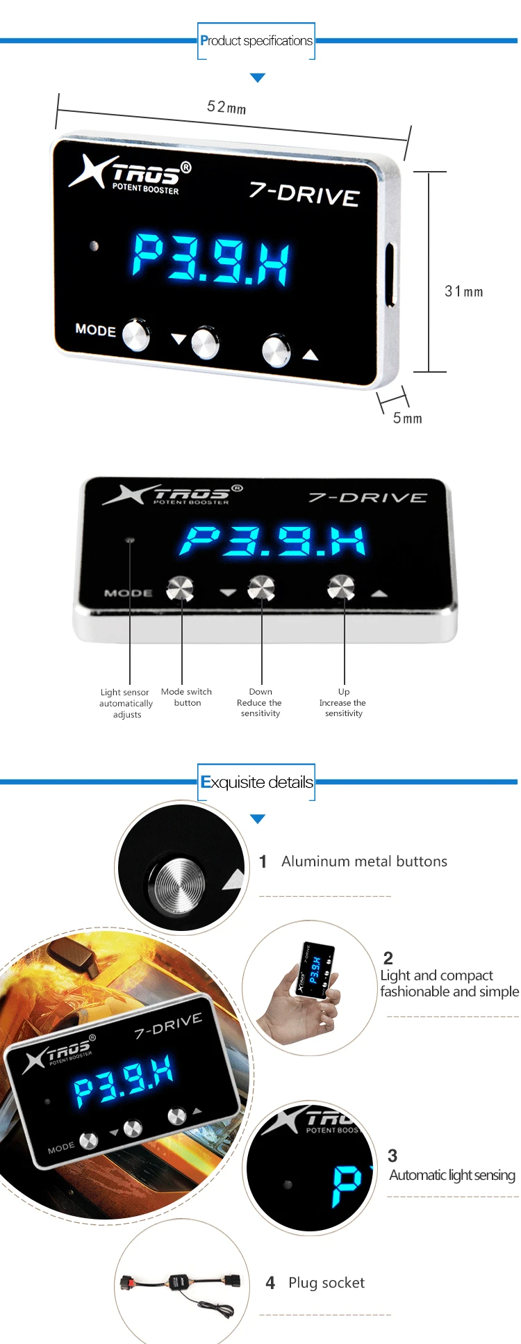 1. Improve the electronic throttle response speed 2. Improve vehicle throttle sensitivity 3. Reduce engine carbon deposits 4. Plug and play