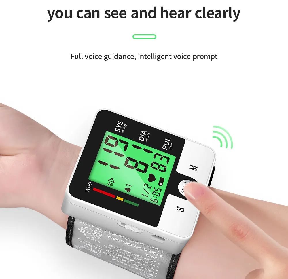 OLIECO USB Перезаряжаемый цифровой монитор артериального давления на запястье Английский Голос LCD PR тонометр измеритель пульса сфигмоманометр