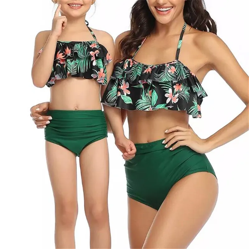 Летний Семейный комплект для взрослых, детский купальник с оборками, комплект из двух предметов, бикини, купальный костюм, комплект для мамы и дочки, пляжная одежда