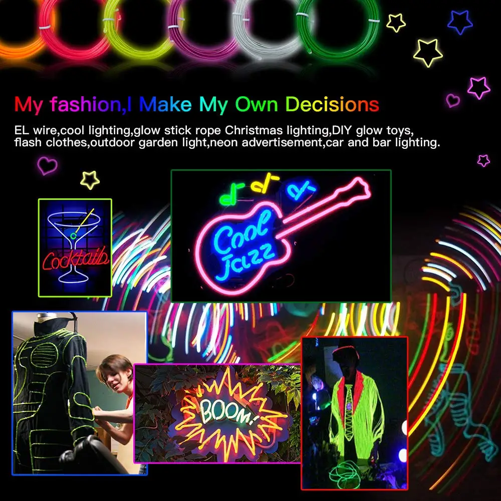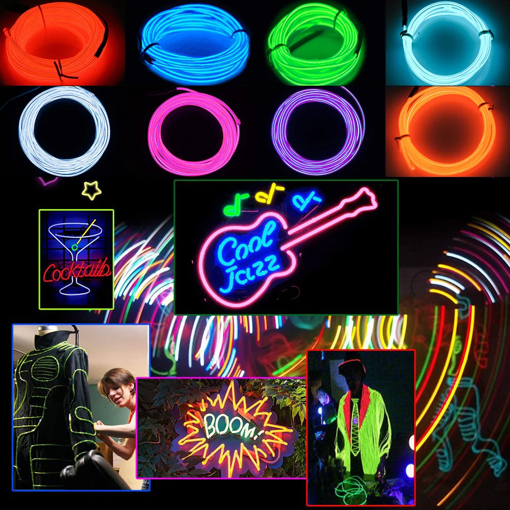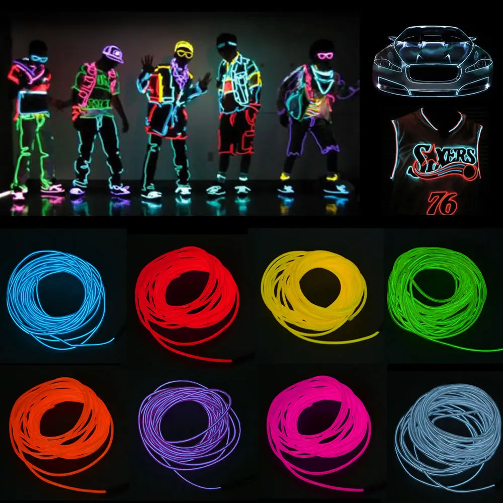 * Неоновая светящаяся стробирующая Электролюминесцентная проволока: идеально подходит для вечеринок, нарядов, украшения автомобиля и так далее.