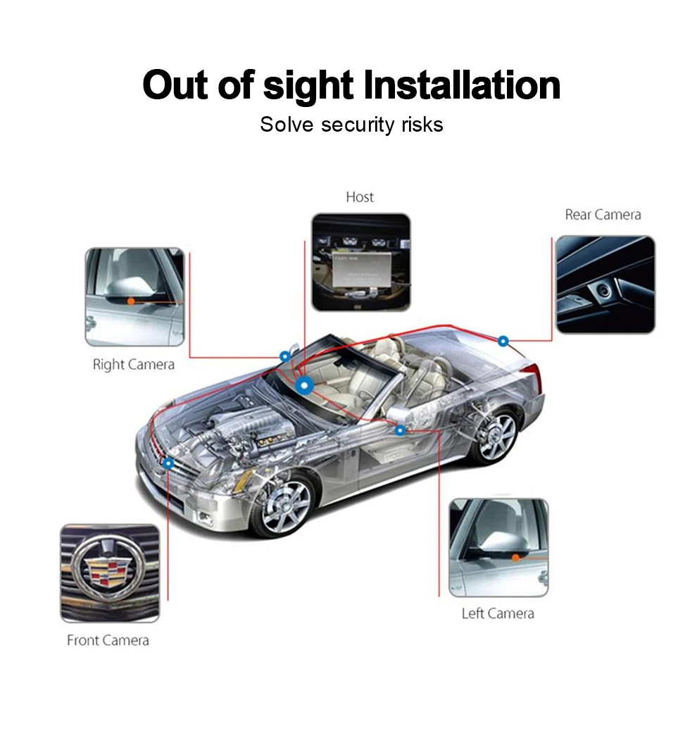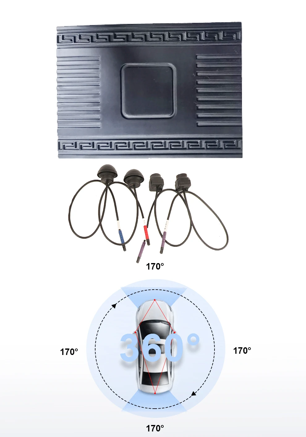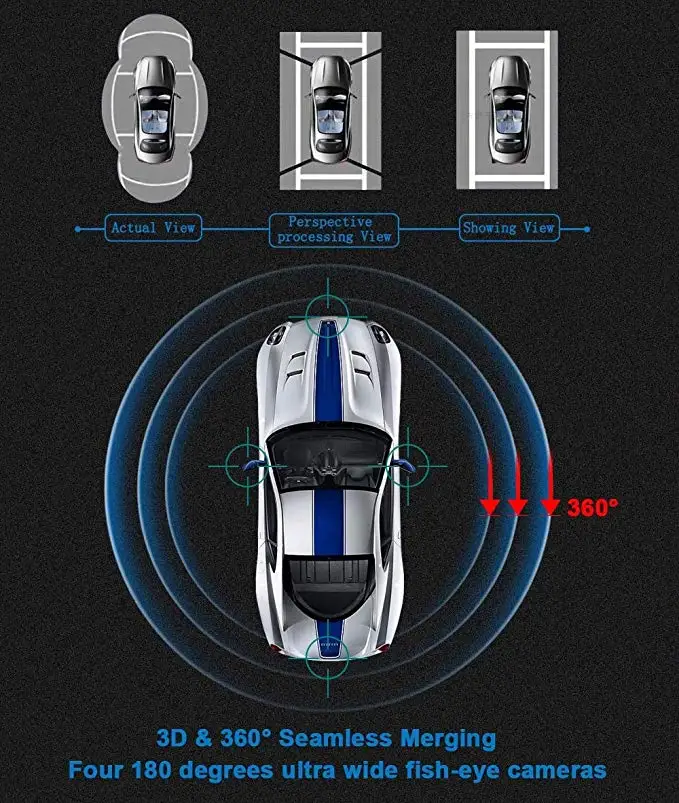 Около 360 панорамной парковки проходит через установленные в передней и задней частях 4 сверхширокоугольных транспортных средства для сбора камер «рыбий глаз» вокруг изображения одновременно, через блок синтеза; алгоритм коррекции искажения изображения, Сращивание и слияние, формируют картинку транспортного средства около 360 градусов 2d и 3d панорамы, Передача данных в режиме реального времени на центральный экран, позволяет водителю отображать окружающую среду, чтобы тело на земле не было видимой слепой зоны, может помочь водителю четко проверить, есть ли какие-либо препятствия вокруг транспортного средства; Поможет водителю легко разобраться со сложными поверхностями и припаркованными транспортными средствами. Продукт прост в установке, устойчив и надежен.