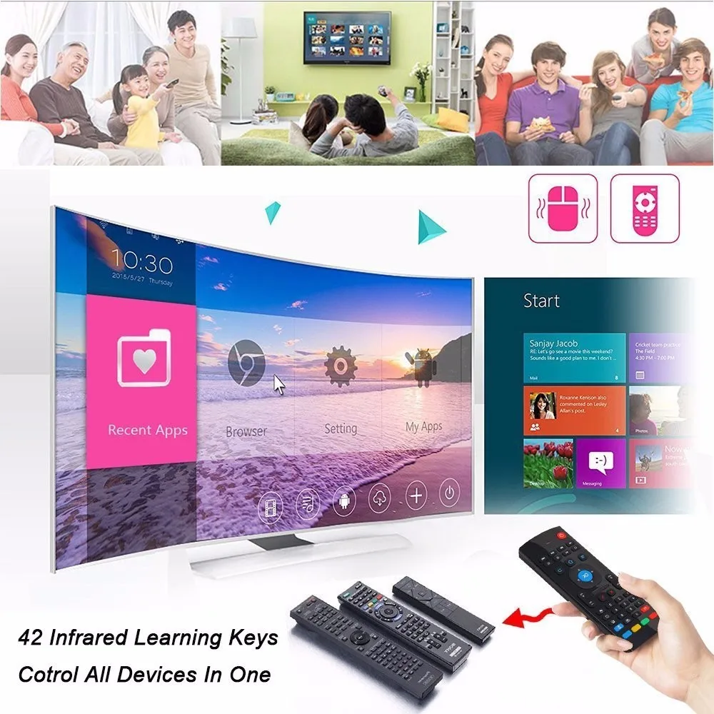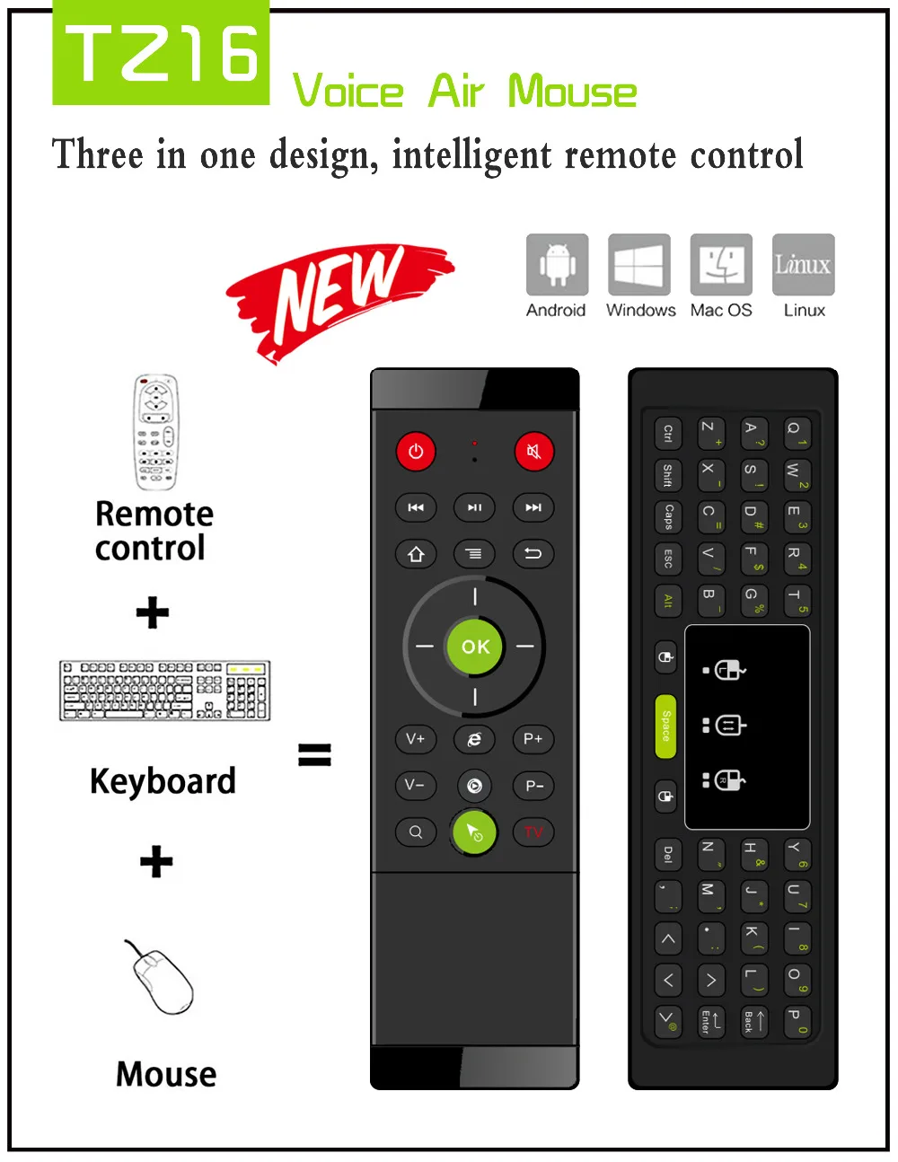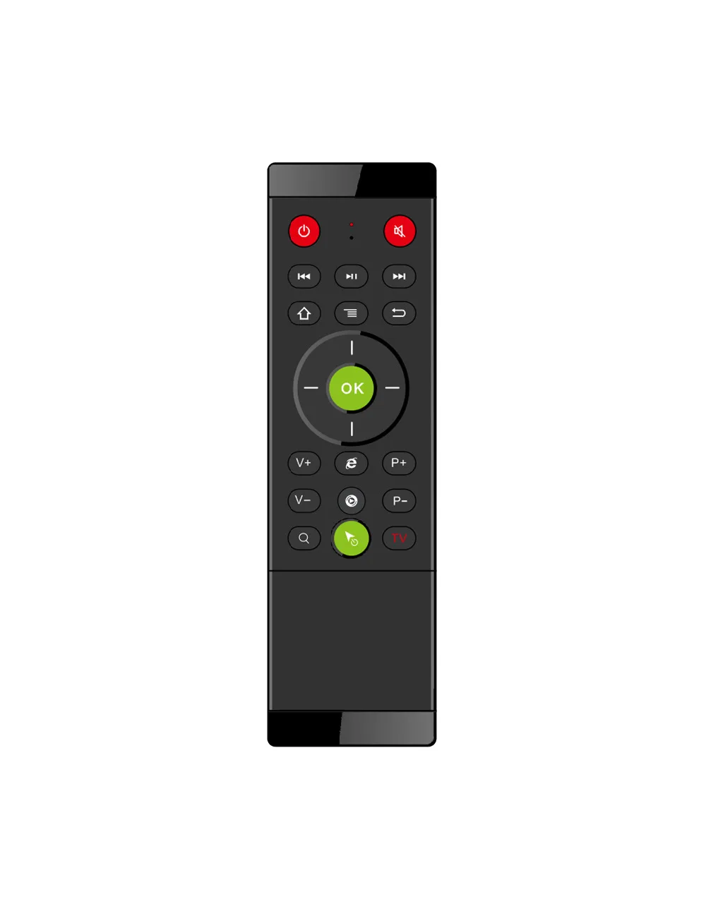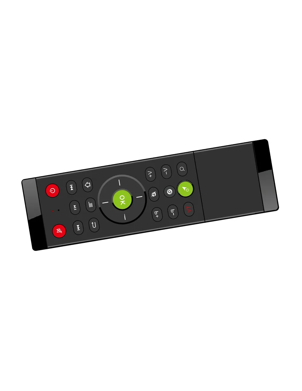 * 43 клавиши клавиатуры и сенсорной панели:Противоположная сторона пульта дистанционного управления-это мини беспроводная клавиатура с 43 клавишами для ввода текста, которая имеет тачпад для управления.