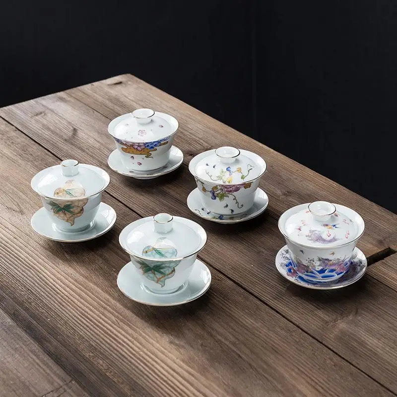 Чайная чашка из белого фарфора расписанные вручную чайные наборы кунг-фу чайные наборы китайский керамический гайвань наборы портативная чайная чаша для путешествий керамическая чайная чаша