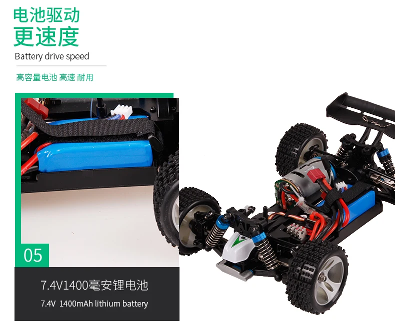 Категория продукта: RC автомобиль Игрушка материал: пластик Цвет: A959-B зеленый Максимальная скорость: 70 км/ч Высокая скорость вождения: около 6 минут Время зарядки: 2-3 часа Расстояние дистанционного управления: более 100 метров Корпус аккумулятора: 7,4 V Режим дистанционного управления: ручка