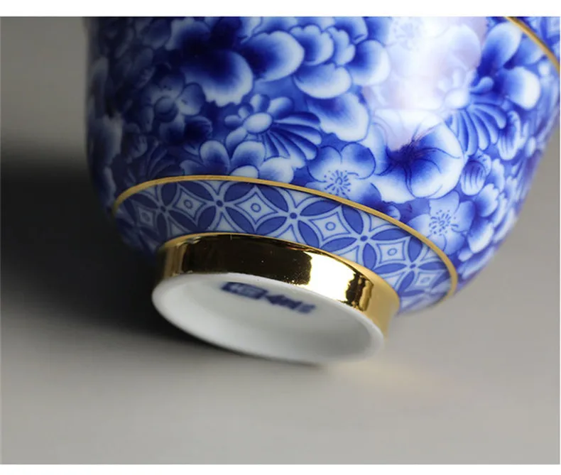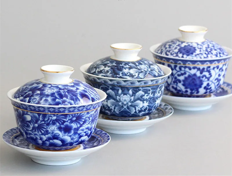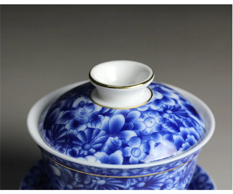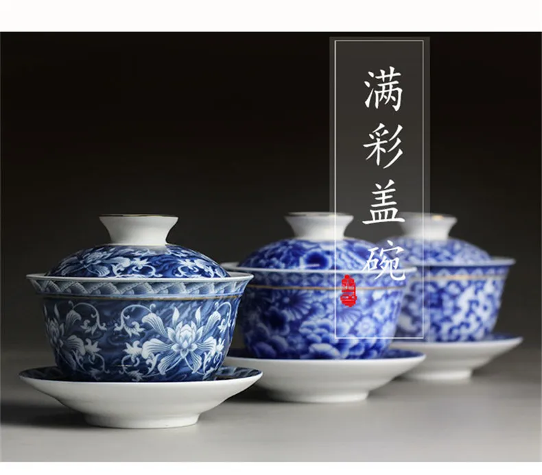 Чайная чаша китайский чайный набор Цзиндэчжэнь синий и белый фарфор Gaiwan керамическая чайная чашка и блюдце набор золотой окрашенный чай Tureen