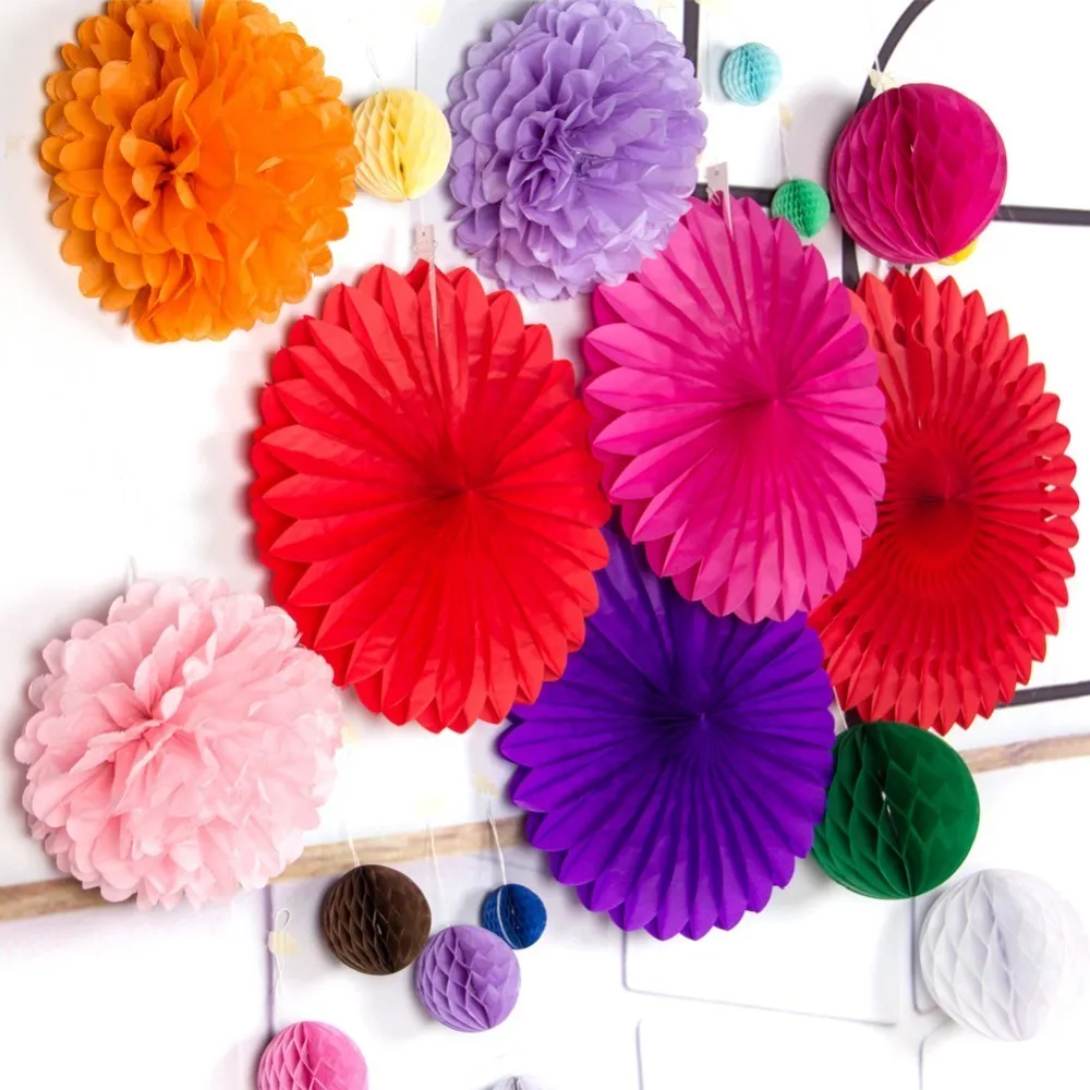 3 шт. 15 см сотовые шарики (1 шт. фуксия, 1 шт. темно-зеленый, 1 шт. белый)