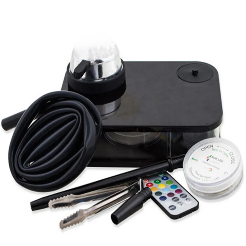 Материал: акрил, сплав, силикон, пластик, светодиодная лампа и т. Д. Основание кальяна: 21,5*15,5*5,5 см Вес: около 1000 г Длина шланга: 128 см Цвет: красный, черный Оснащенный светодиодной лампой с дистанционным управлением, меняющей цвет, светильник, меняющий свет и дым создают идеальную атмосферу. (Без аккумулятора) Посылка включает: 1 акриловая основа, все аксессуары включены как на картинке в посылка 1 X силиконовый кальян шланг 1 X силиконовые миски 1 х металлические держатели для угля