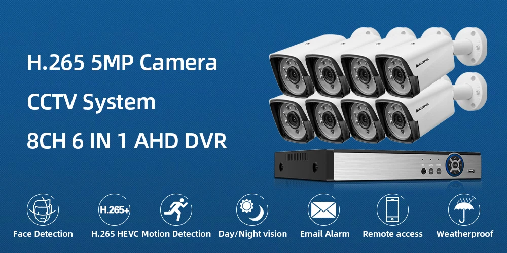 H.265 8CH DVR комплект домашней охранной системы видеонаблюдения 5MP 8CH CCTV наружная Водонепроницаемая AHD камера WIFI Обнаружение движения лица
