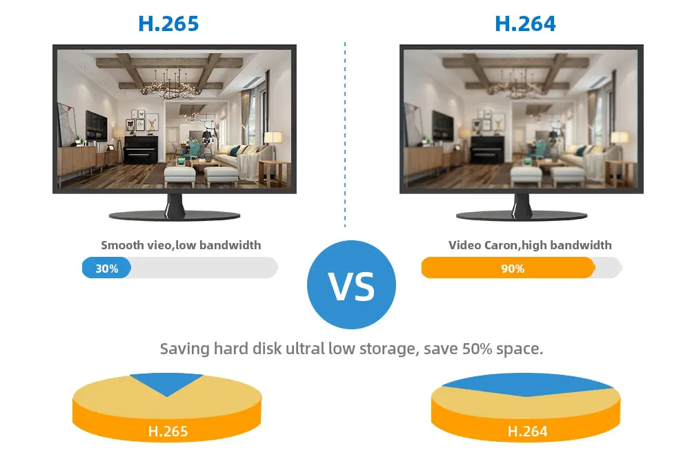 H.265 More Clear , HD resolution offer you best image quality in a lower bit rate.