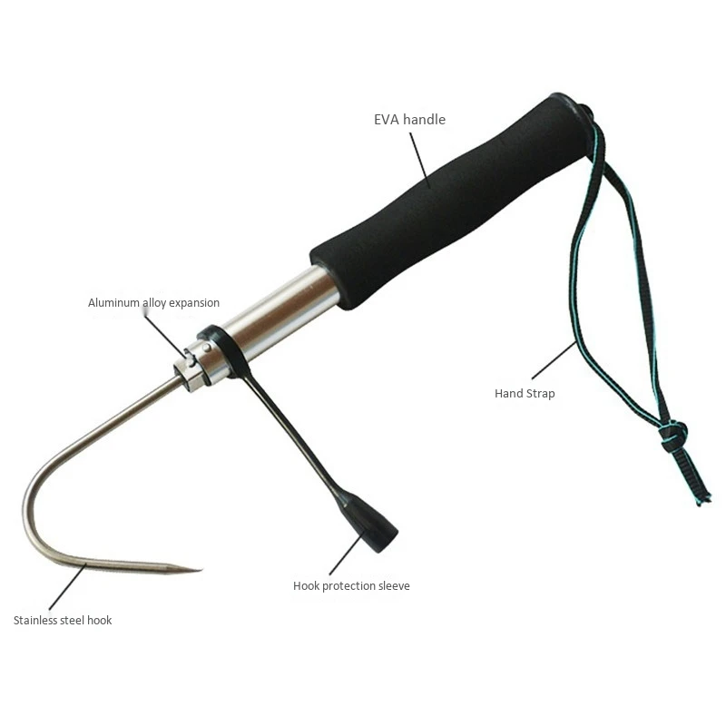 Retractable Fishing Gaff Sharp Hook Fishing Gear Hook Tackle with Soft Handle Fish Lip Grip Handle Grab Carp Outdoor Fish Tool