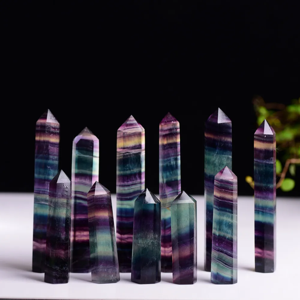 Натуральный гексагональный кварцевый флюорит Палочка камень фиолетовый зеленый драгоценный камень
