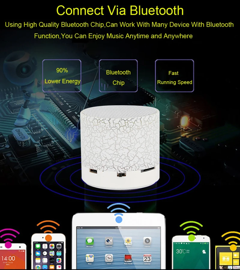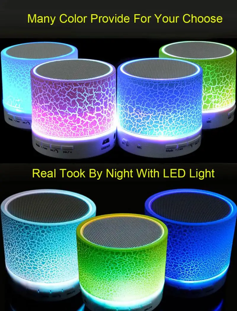 Модный мини-динамик с рисунком трещин, сочетающийся с умными светодиодными разноцветными лампами, кажется нежным и крутым, полным индивидуальности и сделает ваш динамик более привлекательным, компактный размер и тонкий внешний вид подходят для прослушивания музыки в машине дома/офиса/спальни или во время прогулки на улице