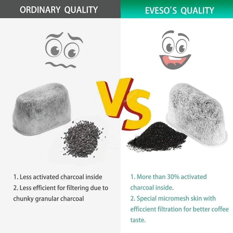 Многоступенчатая фильтрация: угольный фильтр для воды удаляет вкусы и запахи в дополнение к частицам, бактериям, кистам, хлору, органике и свинцу, улучшенное качество смолы может защитить вашу кофемашину Breville от daes, создаваемых твердым нарастанием воды.