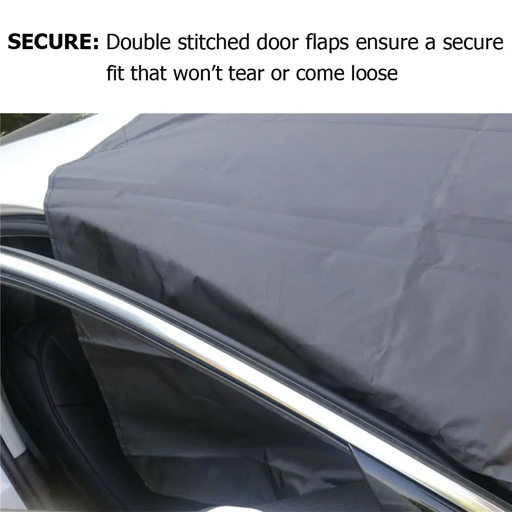 -Как только ваш автомобиль будет припаркован, просто поместите боковые панели в боковые двери водителя и пассажира и прикрепите магниты к вашему автомобилю. Обратите внимание, что присоски не используются.