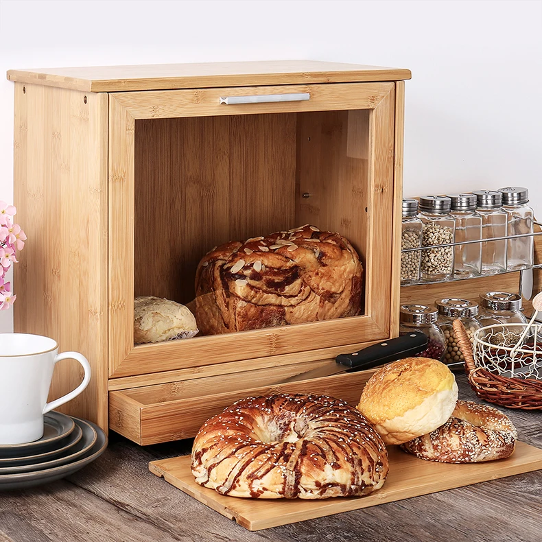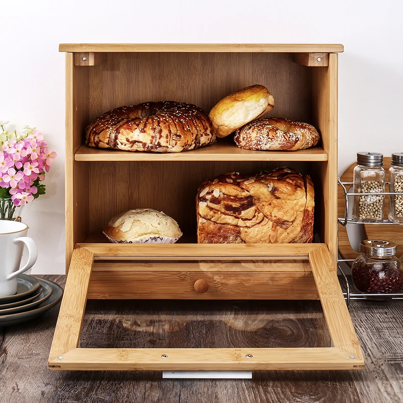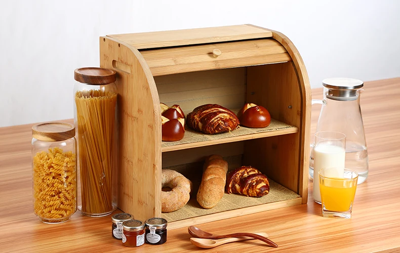 Бамбуковая коробка для хлеба с разделочной доской, съемный ящик для хранения, большой контейнер для еды, ящик, заводской органайзер для кухни на заказ