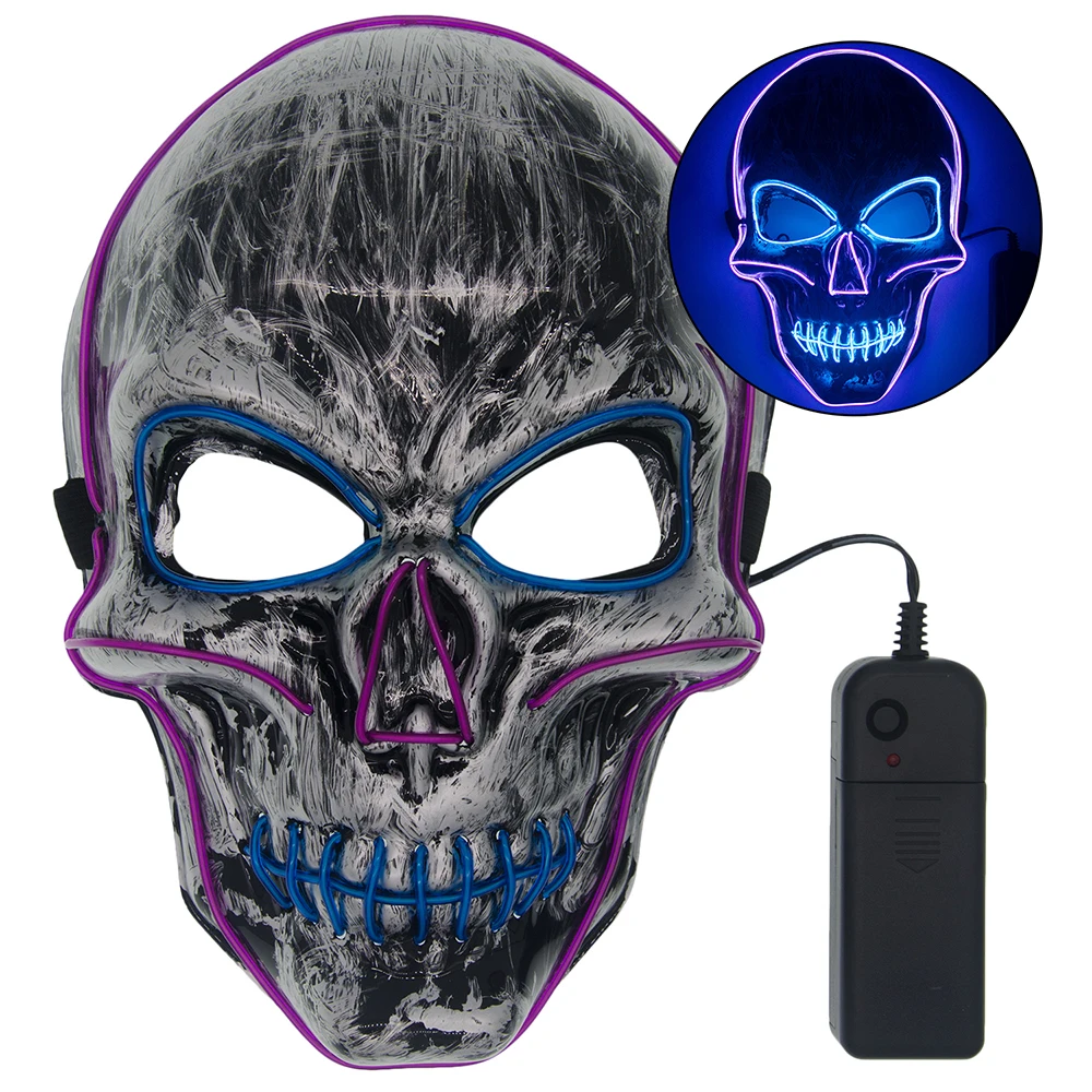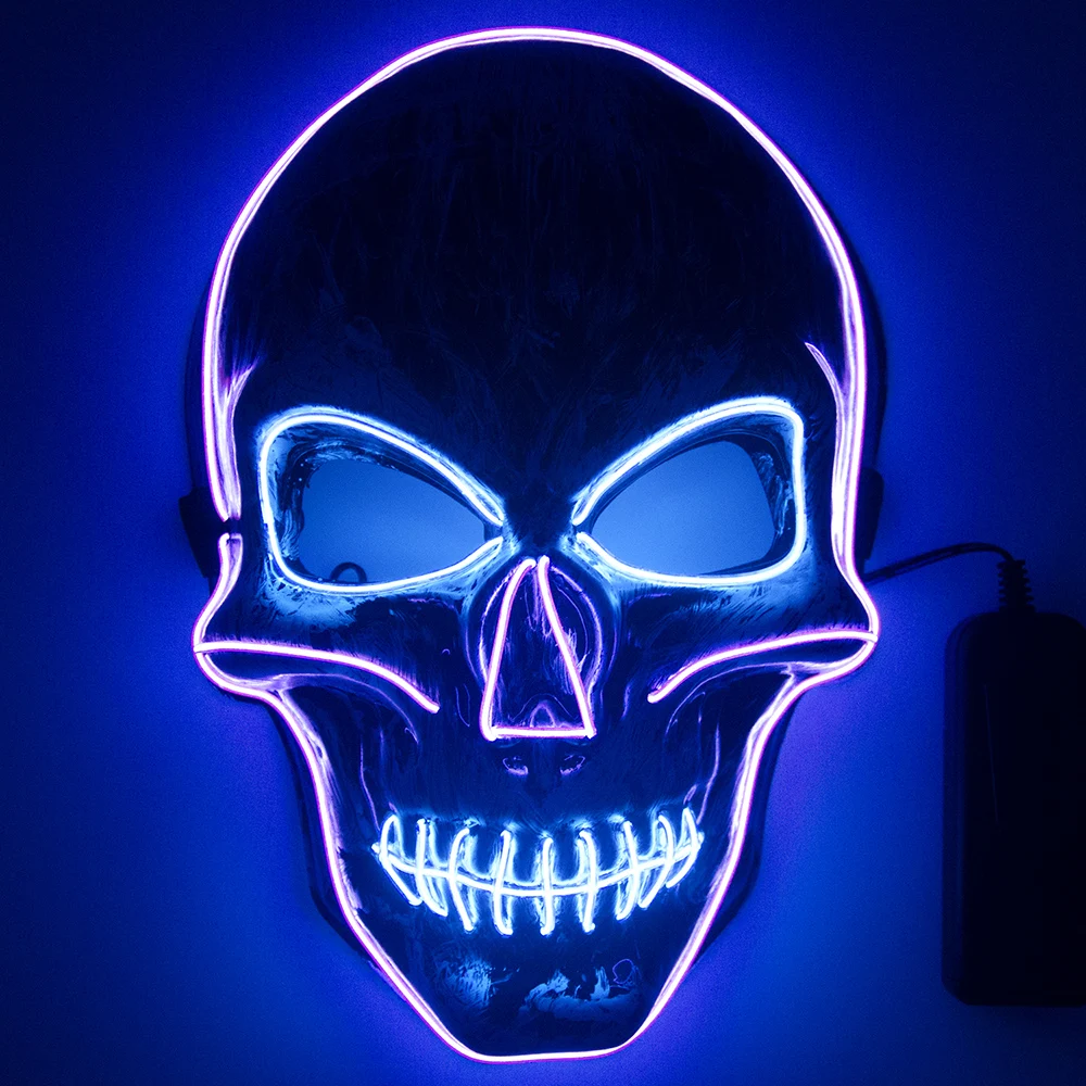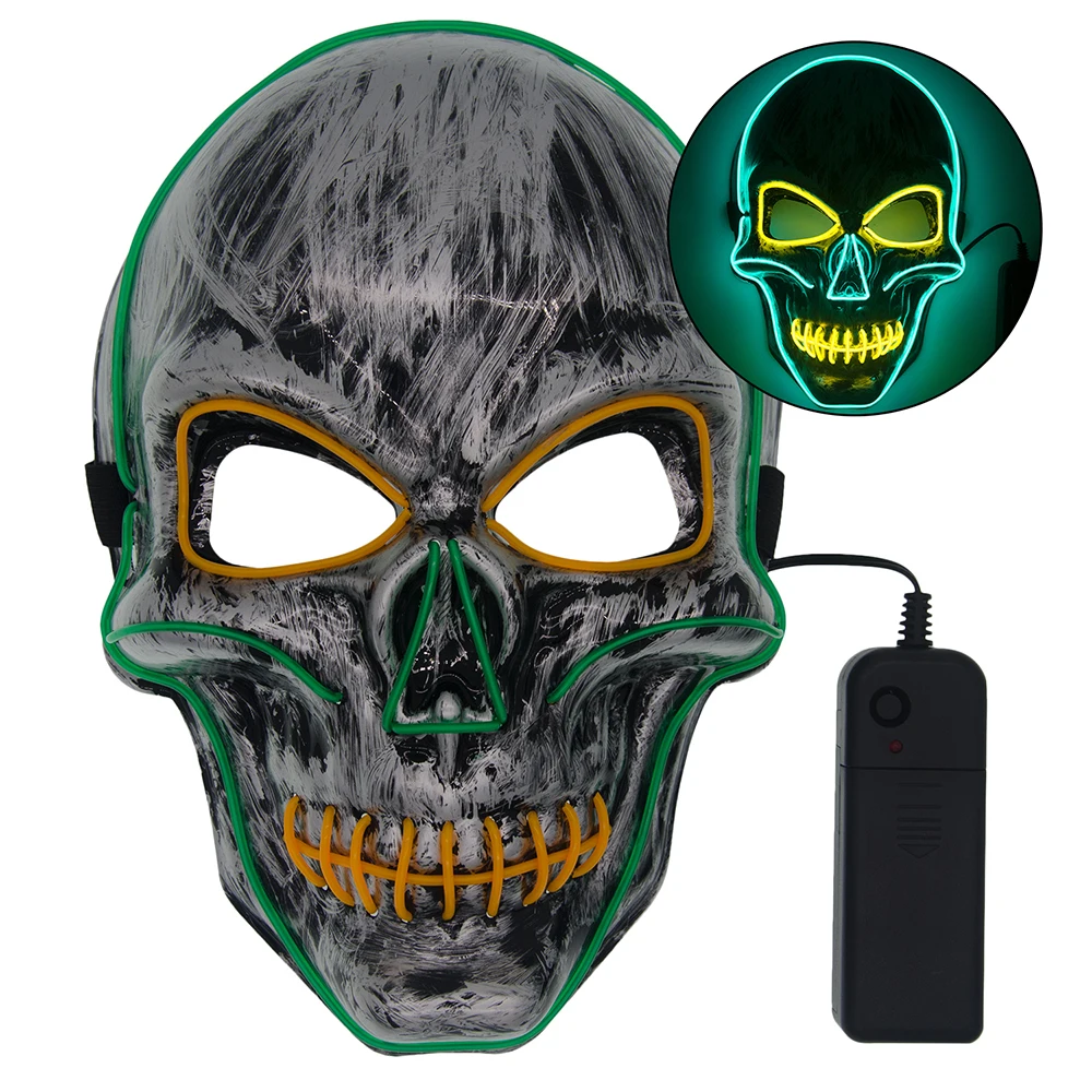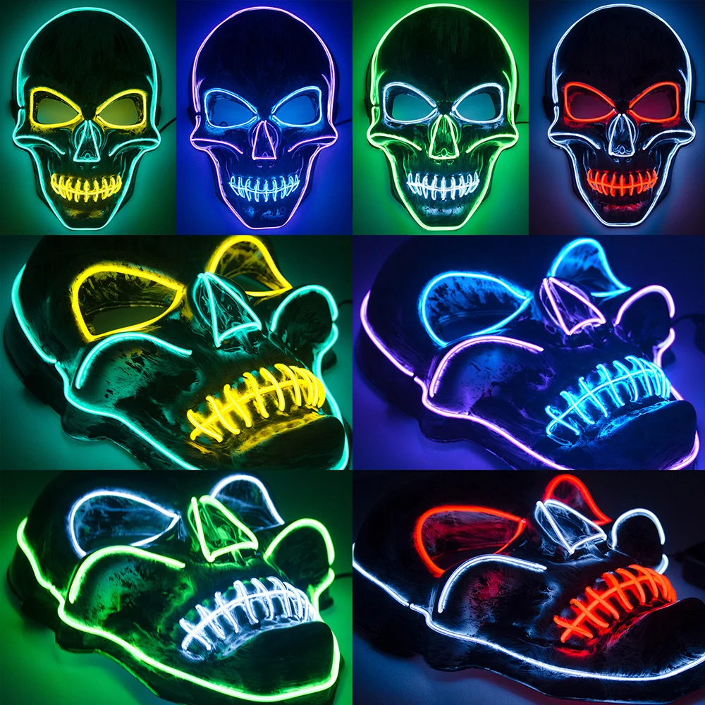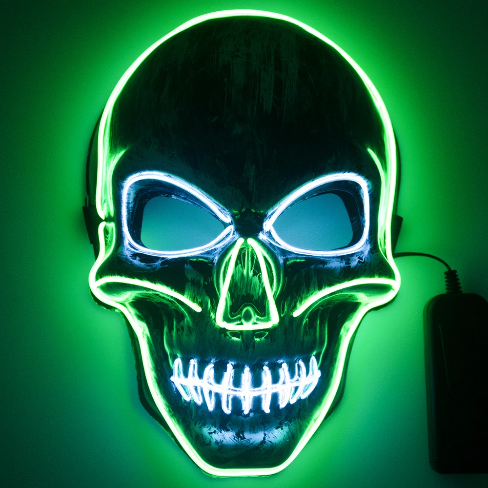 Хэллоуин Череп страшная Маска Косплей светодиодный костюм маска EL провод Светильник для Хэллоуина вечерние крутые Двойные Цвета маска