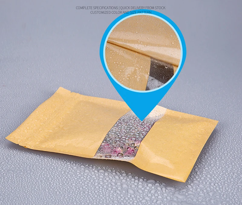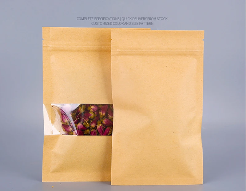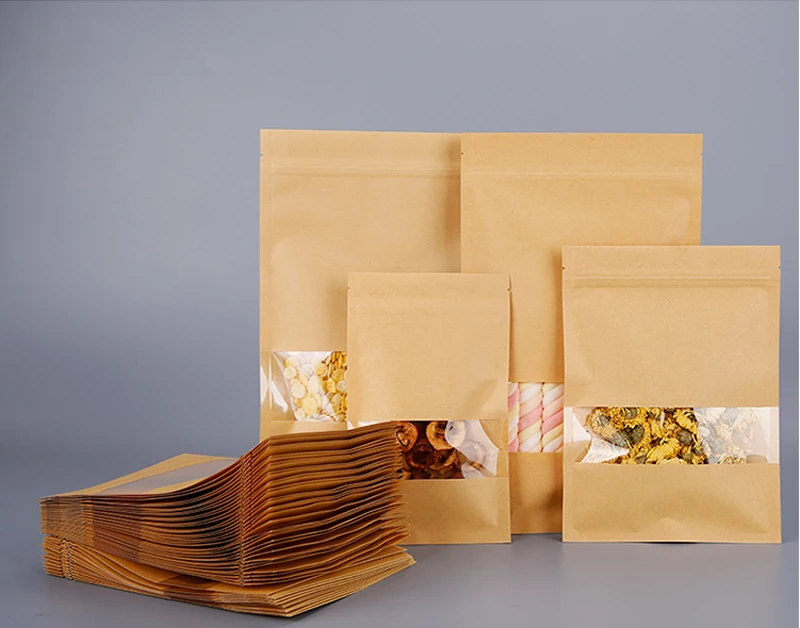 50 шт./лот пакеты из крафт-бумаги с замком на молнии с закрывающимся окном Ziplock мешки для чая, кофе, бобов, конфет, упаковка еды