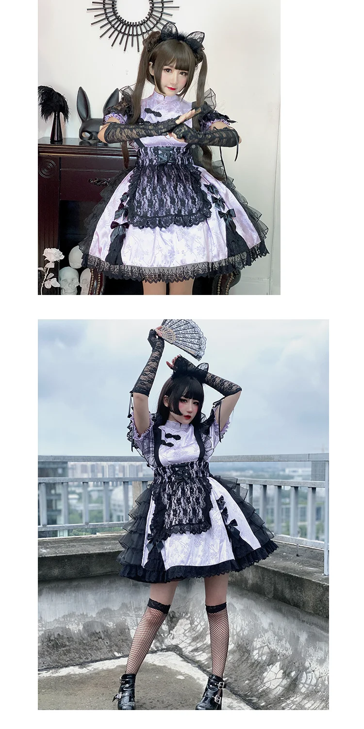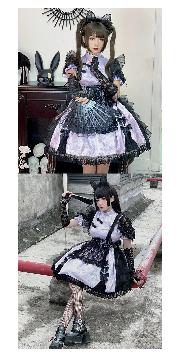 Милая платье Ципао в китайском стиле с кошачья серия новое летнее платье лолиты, в готическом стиле дворец сладкая принцесса kawaii для девочек туфли в готическом стиле Лолита cos
