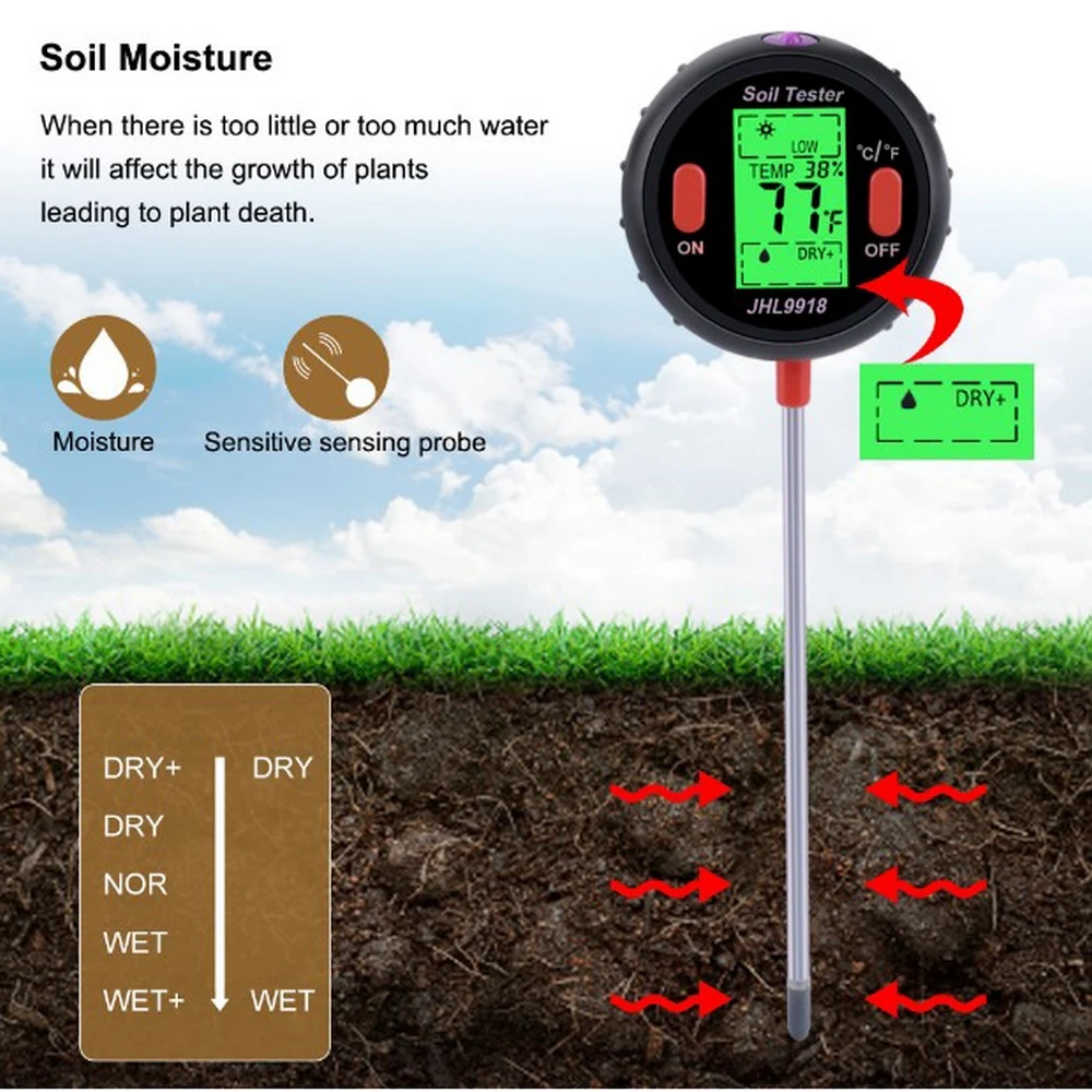 5 в 1 ph-метр для почвы мини-измеритель влажности для почвы Измеритель кислотности измеритель влажности ЖК-дисплей измеритель температуры интенсивности солнечного света тестер