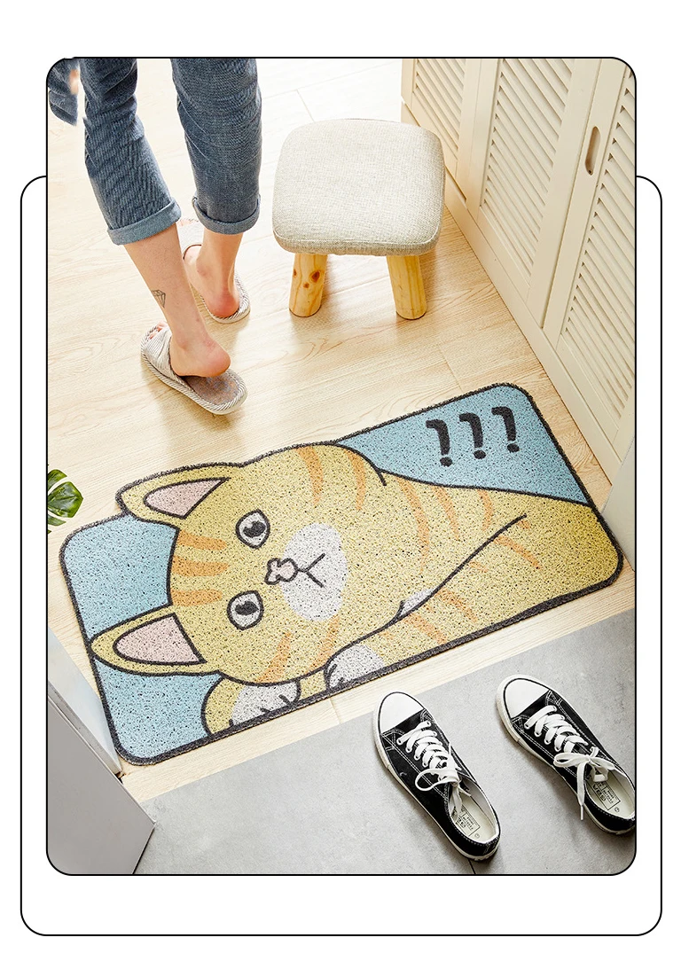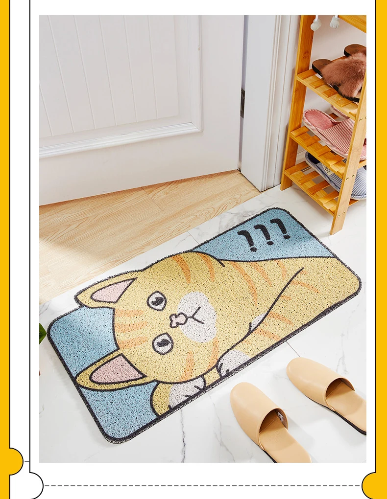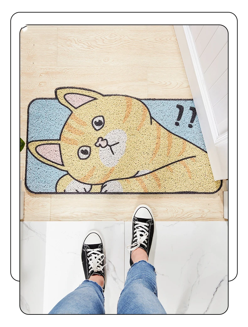 Спецификация Наименование товара: дверной коврик Материал: ПВХ Размер: 45х75см, 60х90см Характеристики: противоскользящие Функция: коврик в прихожую, дверной коврик, коврик для ванной и коврики Дизайн: мультфильм Примечание: возможна погрешность в 1-3 см и небольшая разница в цвете в интернет-магазине