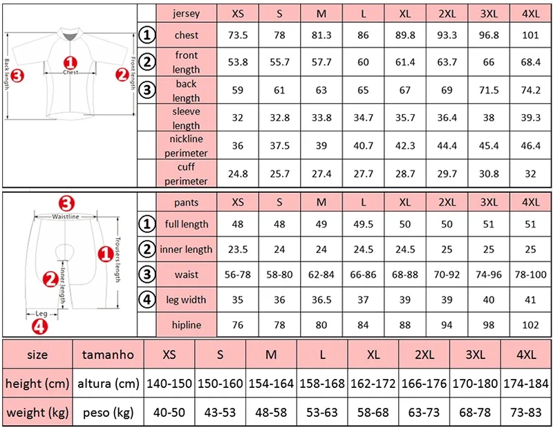 Размеры для езды на велосипеде, комплект