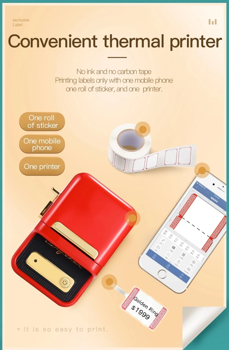 Печать этикеток только с одним мобильным телефонным рулоном наклейки и одним принтером.