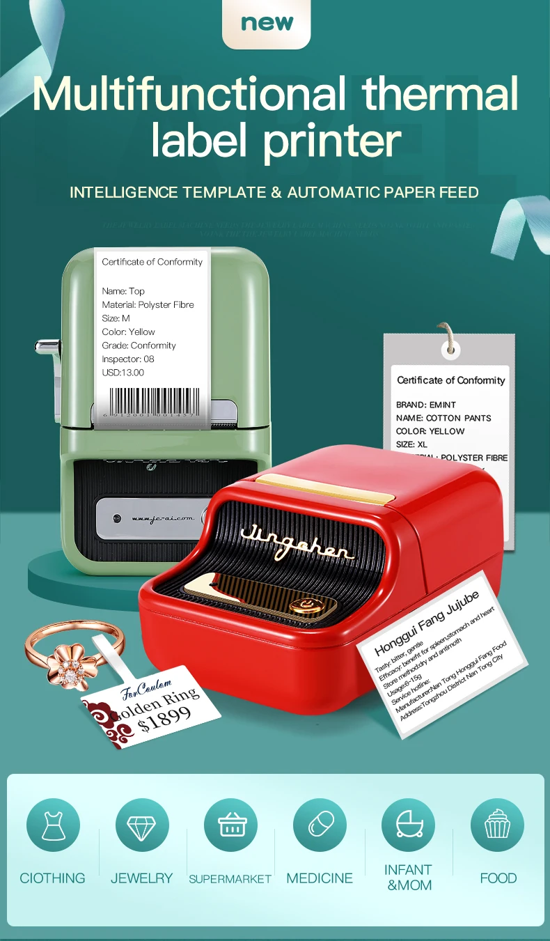 Беспроводной дизайн, поддерживает печать на большие расстояния Прямой тепловой, без чернил, тонера или лент. Поддерживает все основные форматы этикеток: цена, дата, размер, вес, имя и т. д. Универсальный, простой в использовании. Компактный и легкий, удобный для переноски. Аккумулятор емкостью 1500 мА · ч поддерживает длительное использование.