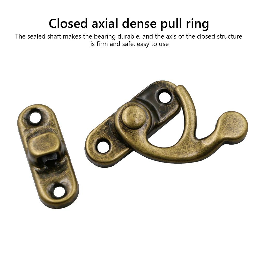 Антикварная бронзовая железная висячая защелка с крюком для мини ювелирных изделий, деревянная коробка с винтами, мебельная фурнитура, защелка, замок, застежка, пряжка.