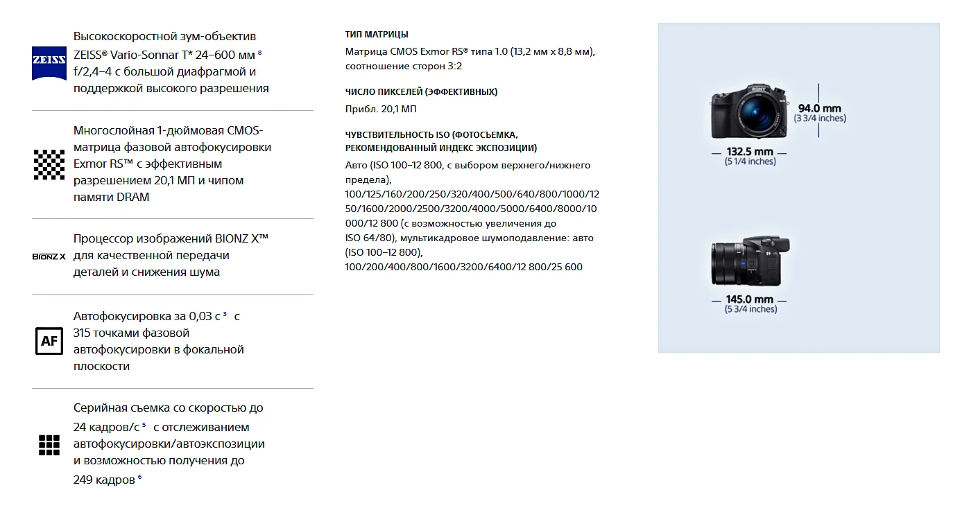 С RX10 IV снимать качественные видео и фото стало гораздо проще: в этой прочной, компактной камере собрано множество инновационных технологий, которые придутся по душе любому профессионалу. Здесь есть и сверхбыстрая система автофокусировки, и легендарная оптика от Carl Zeiss с 25-кратным зумом, мощный процессор и многое другое.