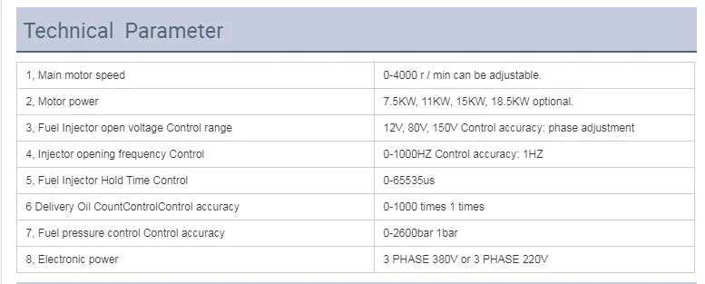 1. Управляется промышленным компьютером в режиме реального времени, операционная система Windows. 2. Устойчивость к смазочным материалам и количество измеряется с помощью датчика и отображен на 10,4 тактильные ЖК-дисплей экрана; 3. Более 400 видов инъекций данных можно искать и использовать. 4. Данные можно искать и сохранять. 5. Установлен BOSCH common rail насос для обеспечения 0 ~ 1600 бар давления рейки. 6. Давление рельса может быть Протестировано в режиме реального времени, он содержит функцию защиты высокого давления 7. Пульс и частота сигнала привода инжектора можно отрегулировать. 8. Время впрыска может быть ограничено. 9. Функция защиты от короткого замыкания. 10. Точное измерение, простота в эксплуатации, низкий уровень шума.