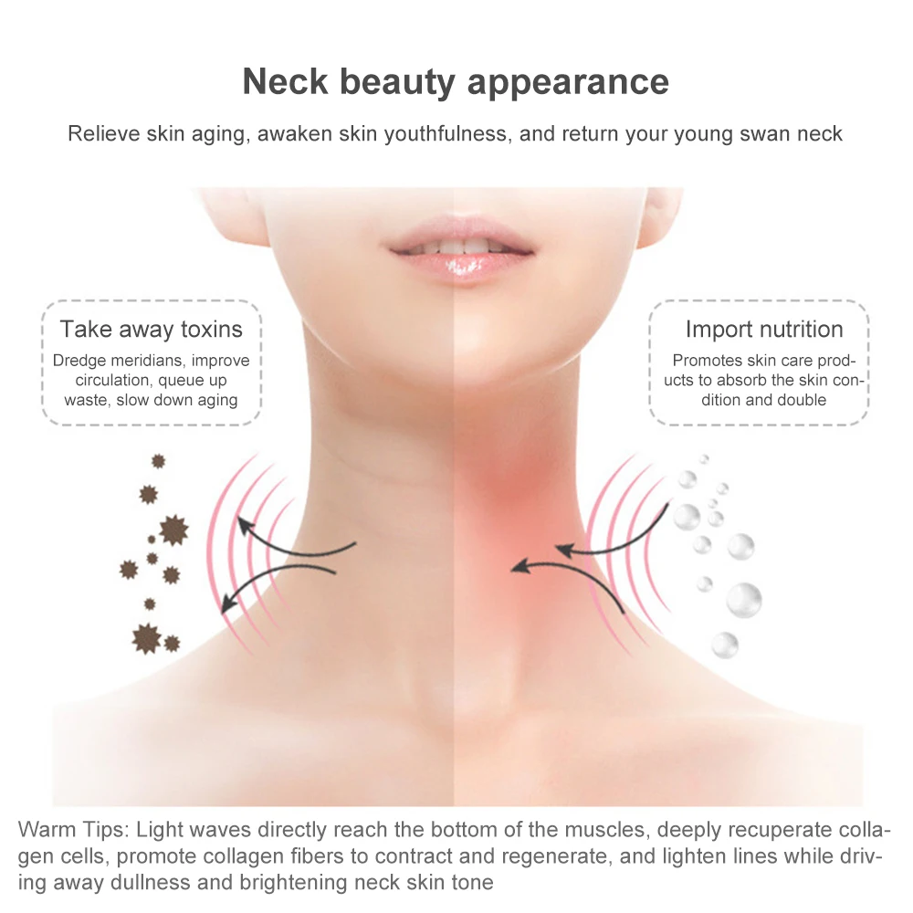 [Специальная обработка длины волны]: нехирургический протектор шеи после фототерапии, на разных длинах волны, оказывает значительное влияние на улучшение тонких линий, морщин, провисания, меланина и шрамов, А также подъем шеи и укрепление.