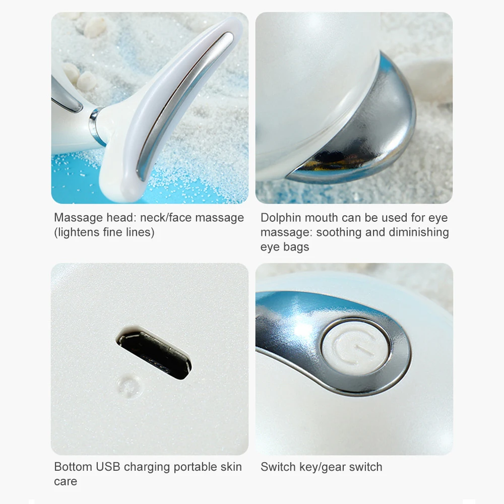 Назначение: уход за шеей, уход за кожей, вибрационный массаж, Разогревающий Массаж, удаление тонких линий кожи, способствует циркуляции крови, дизайн с дельфинами