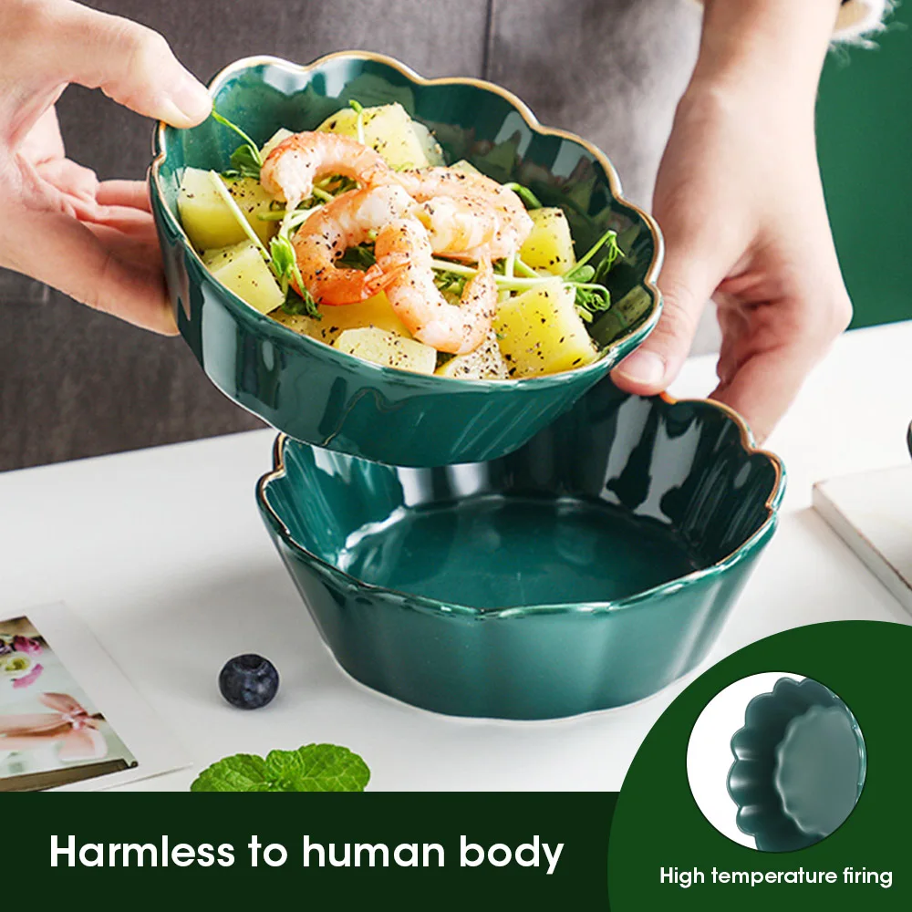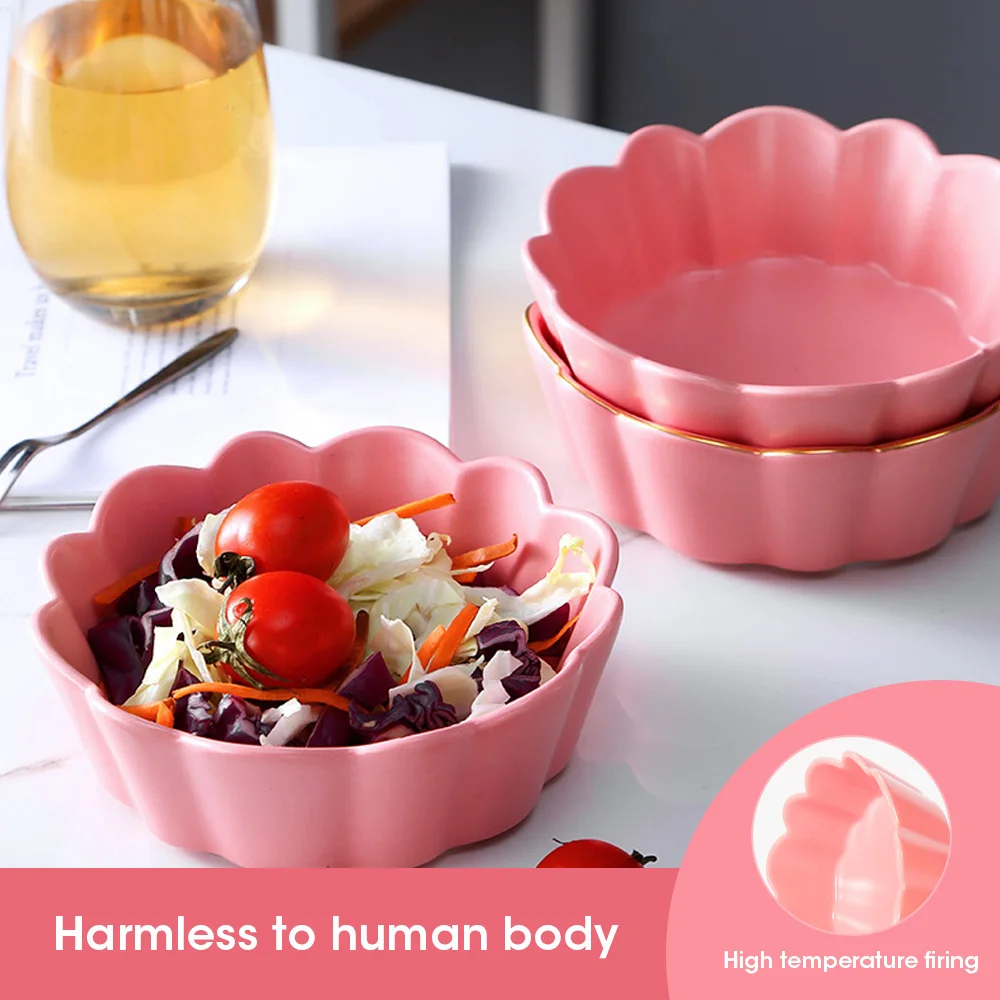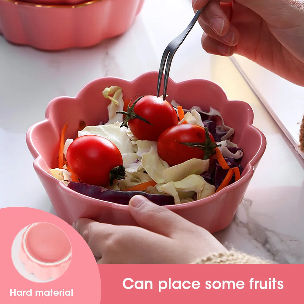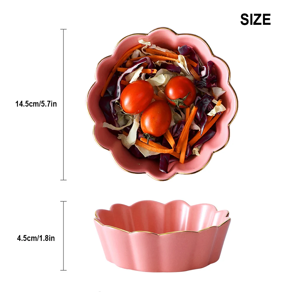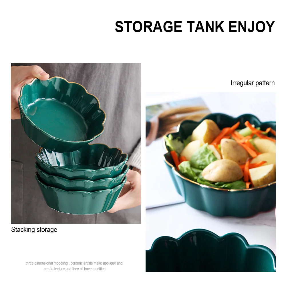 -Его глазурь даже и богата и не выцветает, что безвредно для человеческого тела. -Форма лепестков цветов может не только украсить вашу кухню, но и дать вам насладиться едой. -Роскошный светильник золотого цвета и чистый цвет, вы можете выбрать в соответствии с вашими предпочтениями. -Многофункциональное использование, подходит не только для подачи салатов и закусок, но и для выпечки.