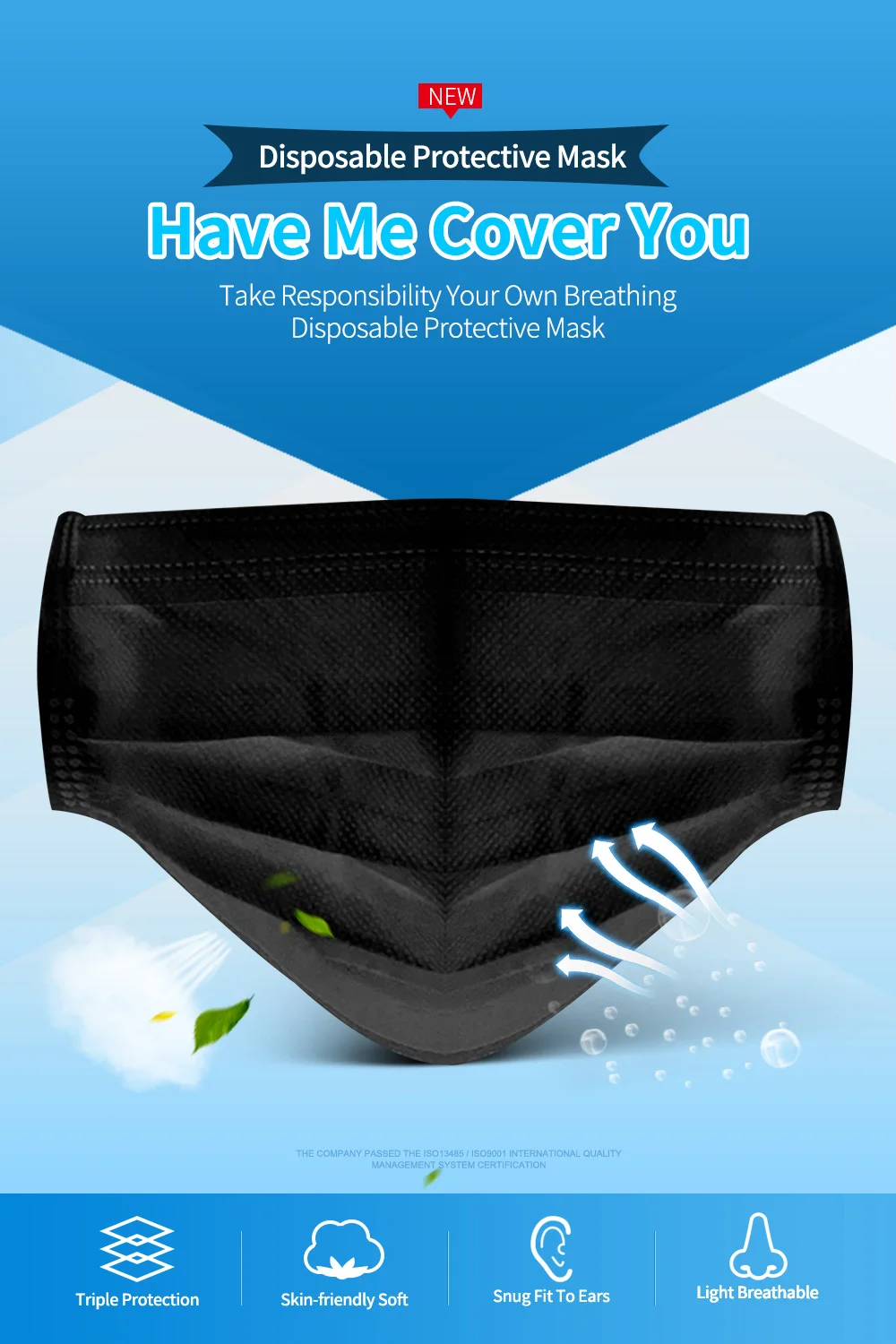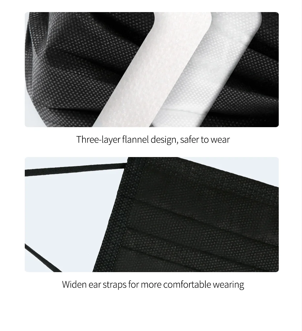 Параметры продукта: Материал: трехслойный нетканый материал Подходящий сезон: Весна, Осень, Зима, Лето Цвет: синий, белый, черный, розовый Стиль маски: Тип уха Размер: один размер Особенности продукта: 1. Новая ткань PP Нетканая ткань, мягкая и чистая, удобная и дышащая 2. Процесс бесшовной вязки 3. Три раза дизайн, больше дышащего пространства на лице 4. Пластиковая полоска для носа, алюминиево-пластиковая полоска для носа, 5. Многослойная защита для вашего дыхательного здоровья Как носить маску: 1. Закройте рот и нос и Повесьте два боковых ремня на уши 2. Фиксация моста носа в соответствии с формой носа предотвращает загрязнения воздуха от входа. 3. Пожалуйста, потяните маску к нижней челюсти, чтобы немедленно предоставить трехмерное дышащее пространство. Пожалуйста, обратите внимание, что указанный Товар производится и распространяется за рубежом и в соответствии с законодательством страны его происхождения