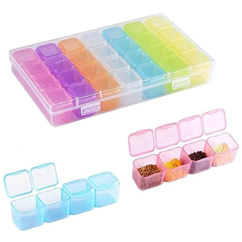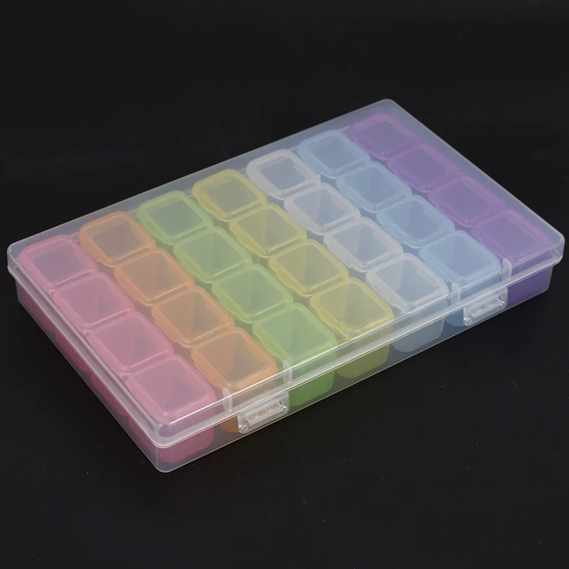 28 слотов, каждый слот с крышкой, практичный для ежедневного использования. 4 слота в группе, всего 7 групп слотов. Вы можете добавить или уменьшить количество сетки по вашему желанию, отрегулировав пластиковые листы.