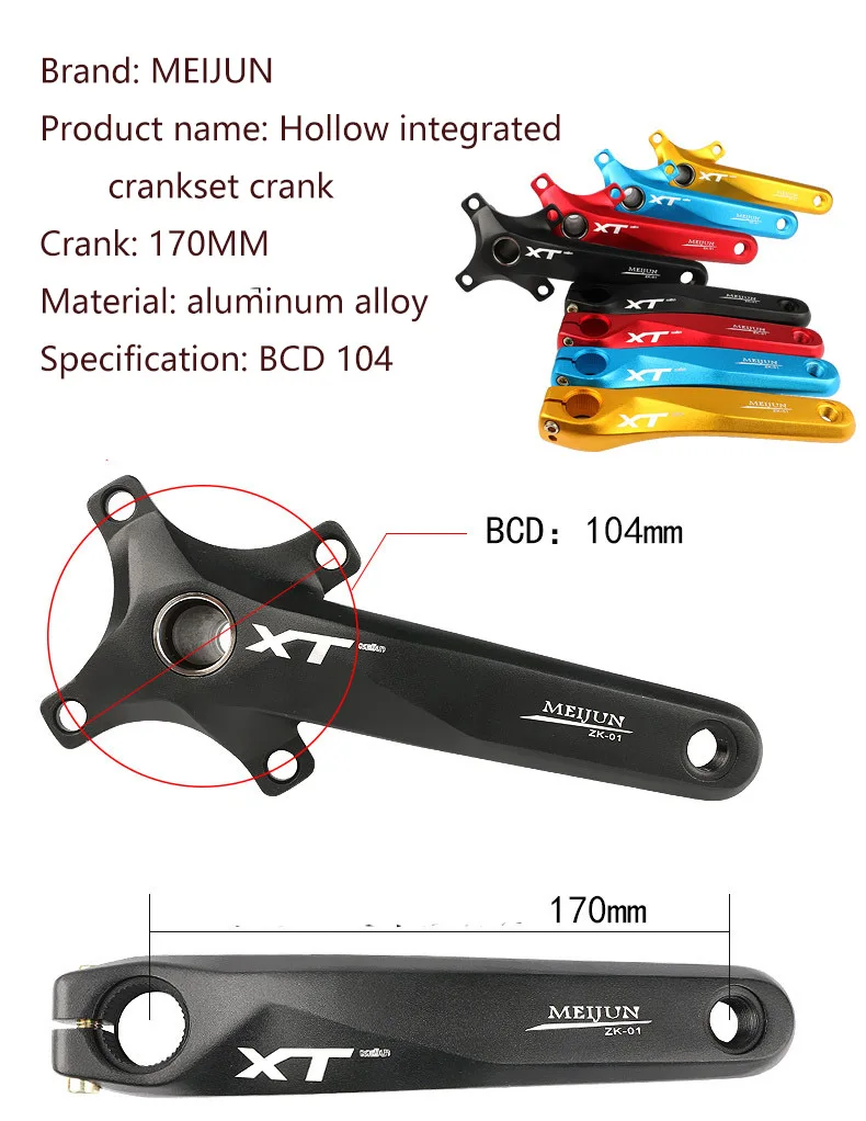 Бренд: MEIJUN Название продукта: односкоростное полое кольцо-цепочка Кривошип: 170 мм Материал: алюминиевый сплав Спецификация: BCD 104 Вес: около 902 г/компл.