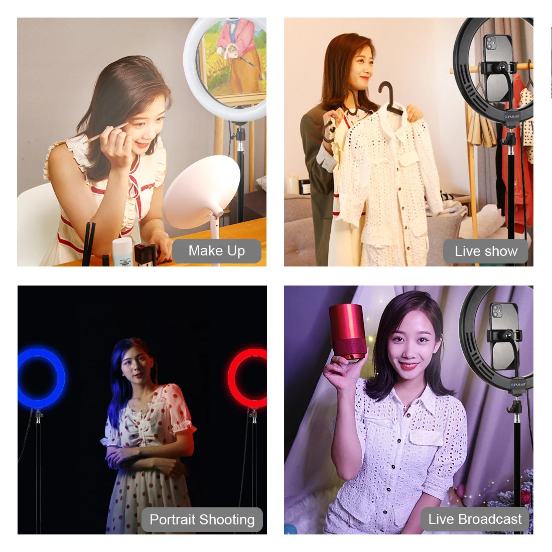4. Режим цветового освещения RGB Регулируемая яркость на ваш выбор, вы можете настроить цвет и яркость очень легко, Отличная яркость может быть достигнута без установки дополнительных красочных фильтров. Мягкий естественный светильник разных цветов освещает вашу красоту в разных случаях.