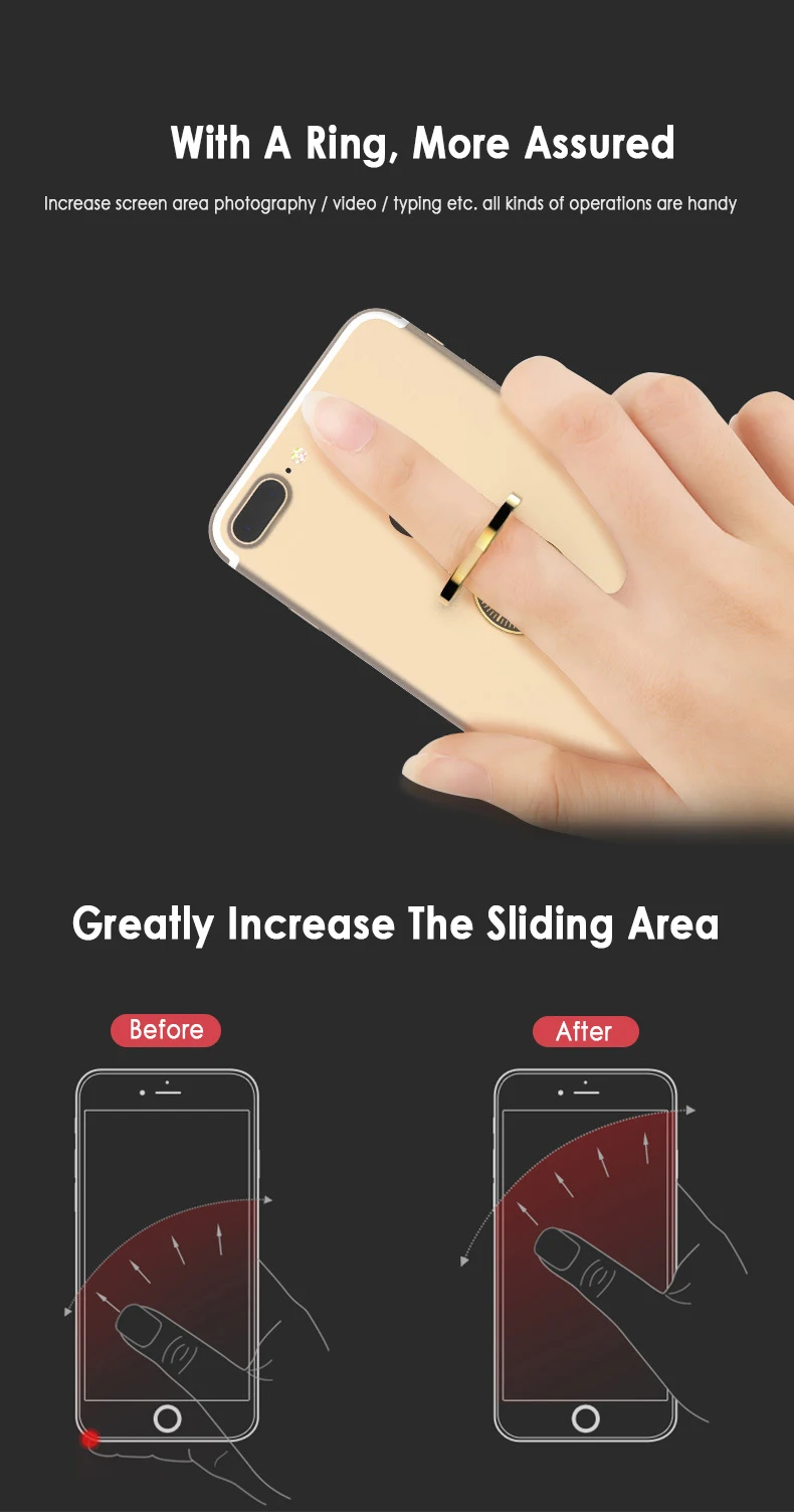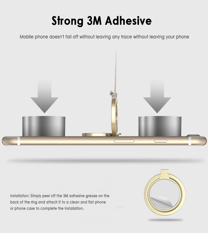 Внешнее кольцо поворачивается на 180 градусов и поддерживает телефон под разными углами.